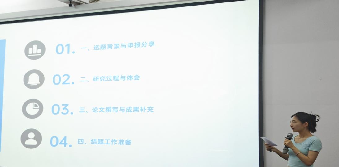 会议第三项议程,优秀学生代表李柃慧和赵慧欣分享了她们参与大学生创新创业训练计划的宝贵经验。她们从自身参与大创项目的经历出发,结合具体实践,为学弟学妹们提供了切实可行的建议,并分享了大创项目带给她们的成长与收获。从项目的选题与策划,到执行过程中的细节把控,再到如何有效协调团队沟通,她们都毫无保留地分享了自己的见解和心得。在座的同学们对未来的项目参与有了更清晰的认识和更充足的信心。