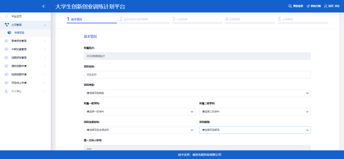 第二步完善项目成员&指导教师信息;