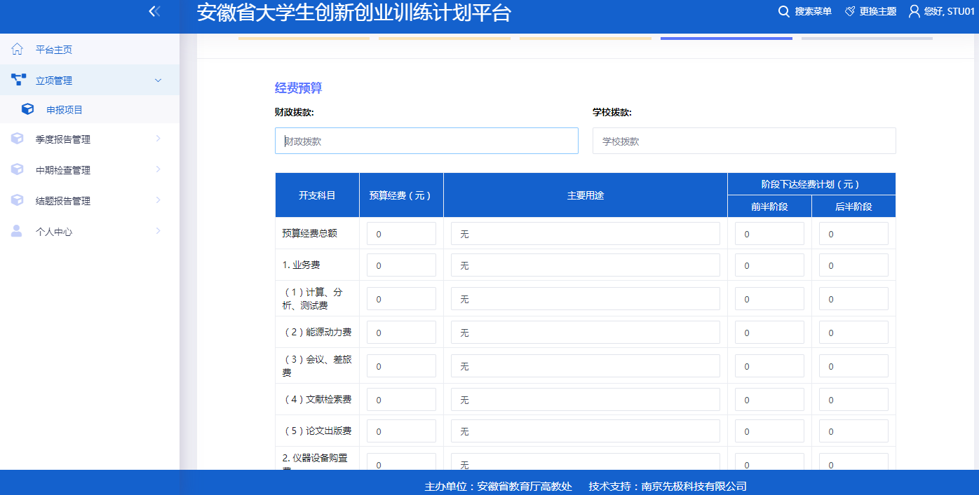第四步填写经费预算;