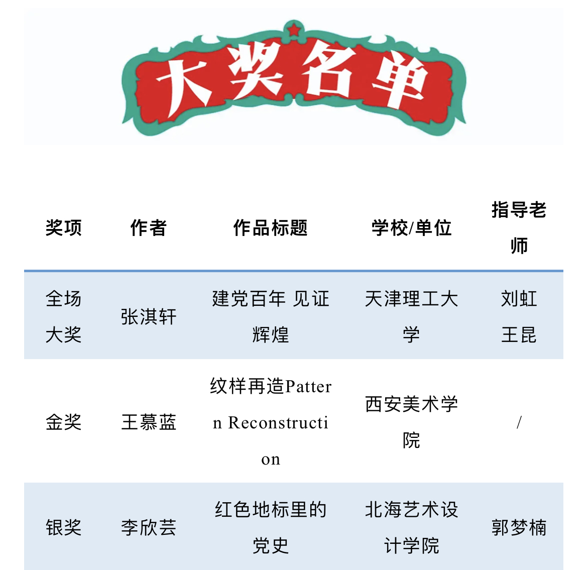 近日,WZD2021第二届纹藏国际纹样设计大赛获奖名单揭晓。我校设计学院视觉传达系2019级本科生李欣芸的作品《红色地标里的党史》荣获“银奖”,设计学院视觉传达系教师郭梦楠获评优秀指导老师。