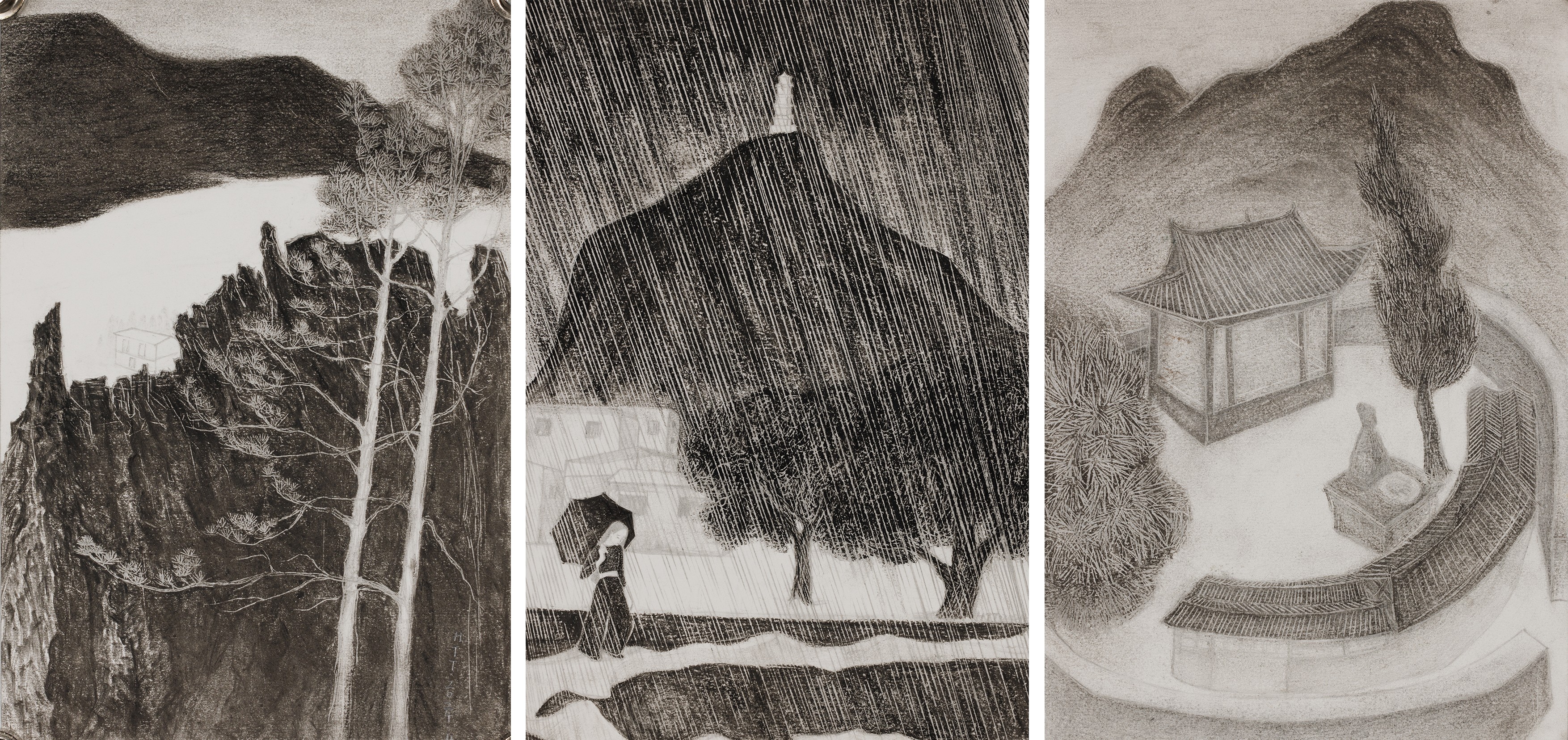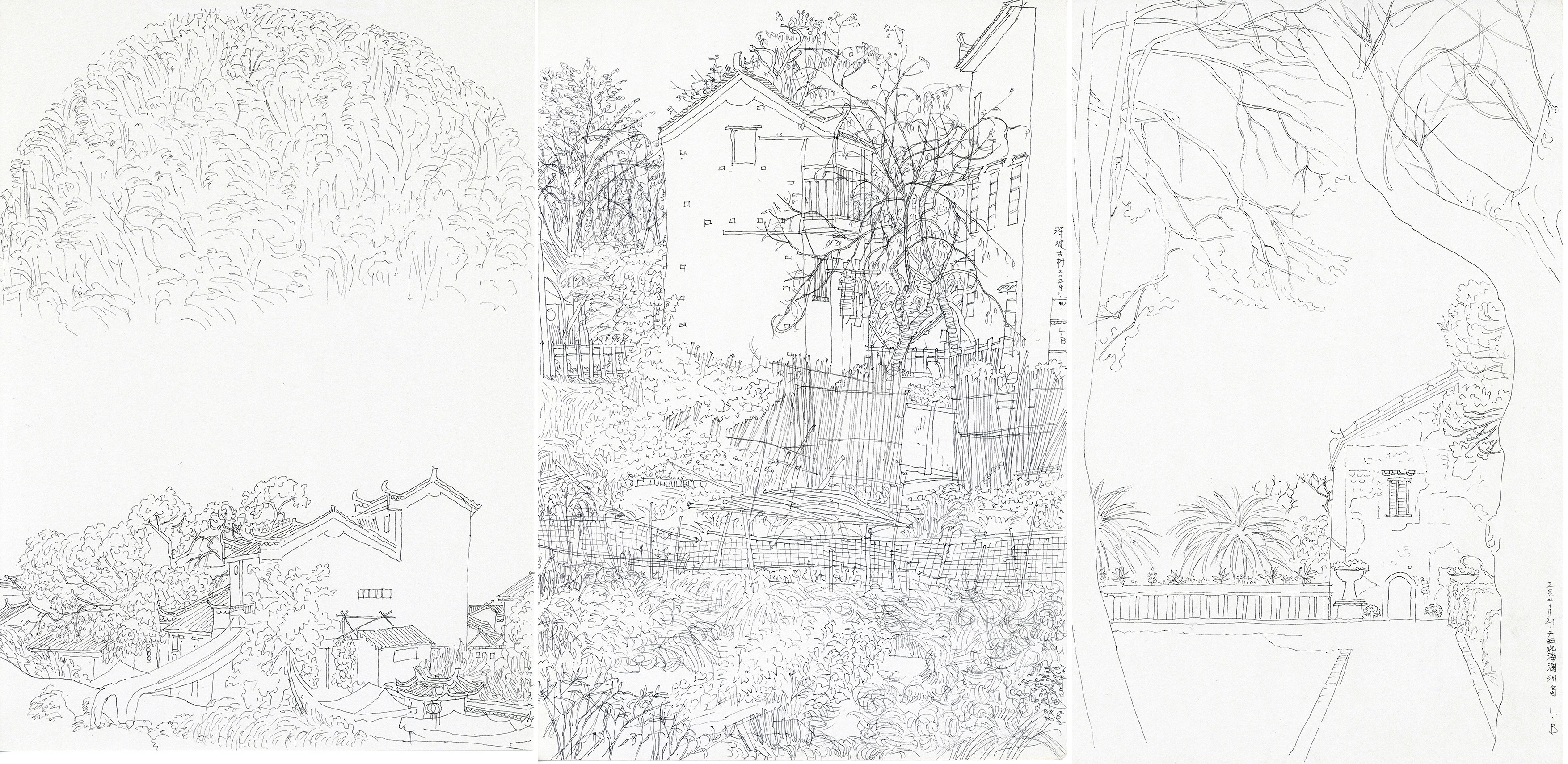 胡童童,《临贺组画》,18x26cmx3,纸本素描