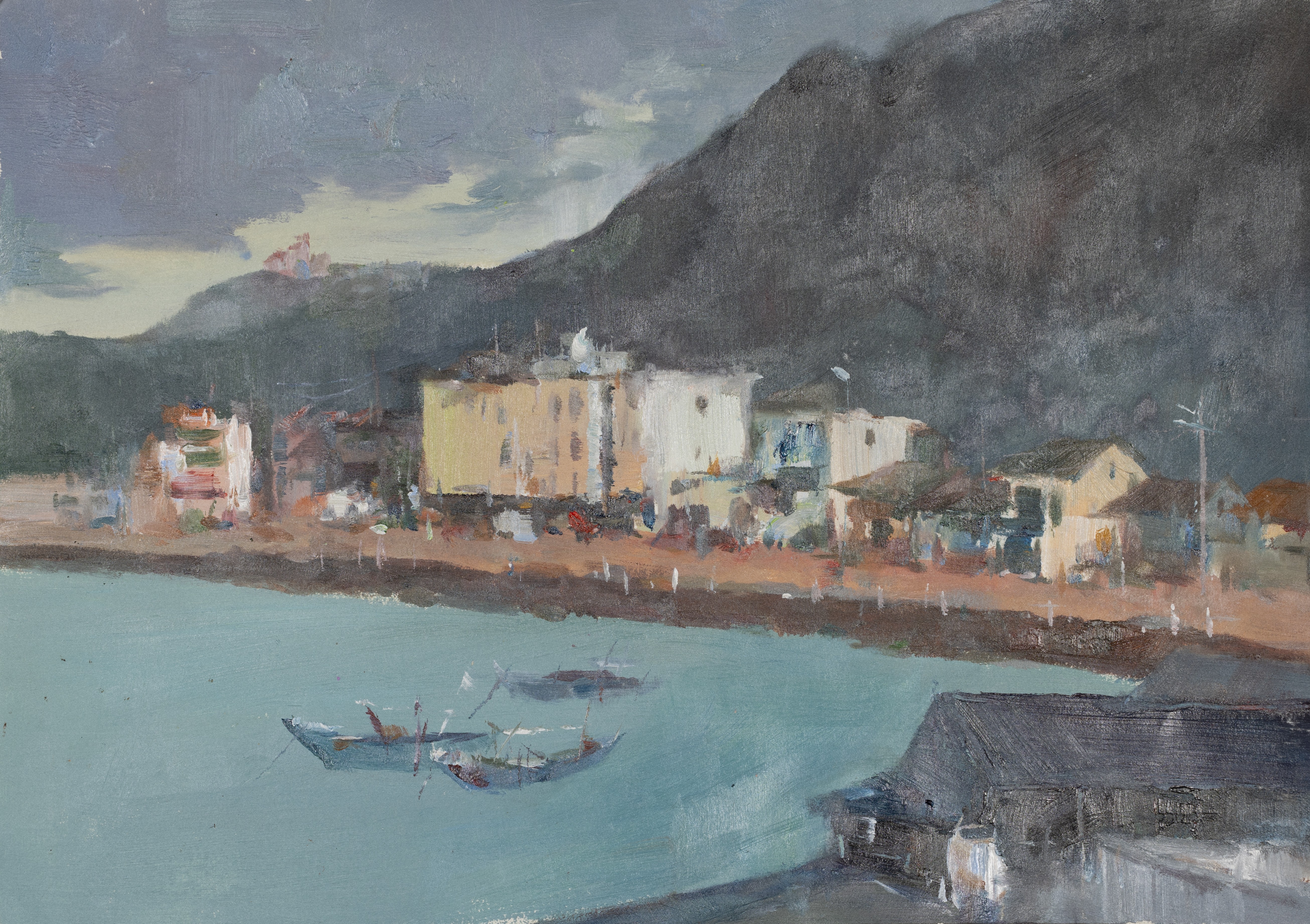 殷子涵,绘画专业,《湾》,4开,纸本水粉
