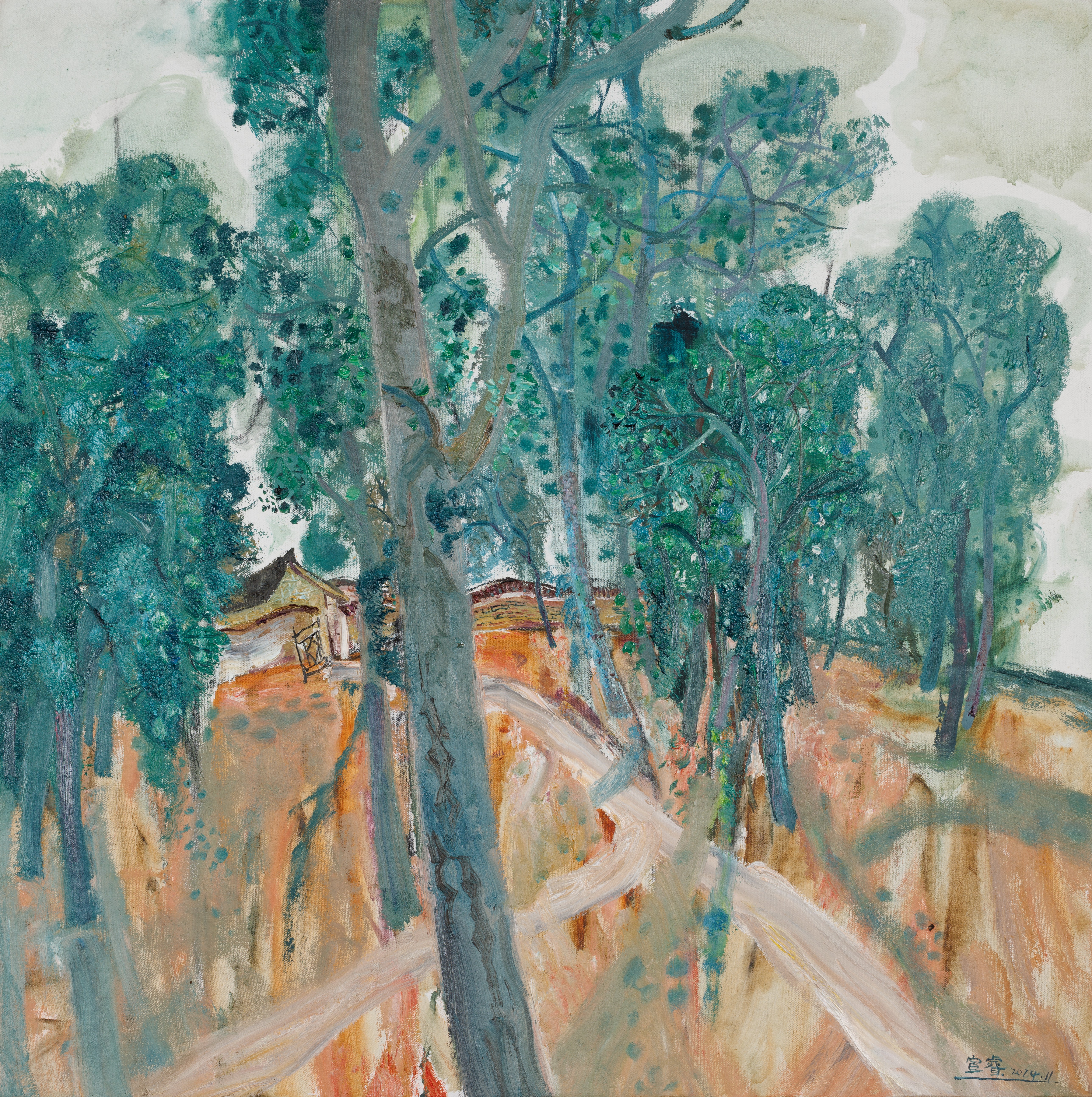 李林峰,绘画专业,《浮岚暖翠—林中路》,60x70cm,布面油画
