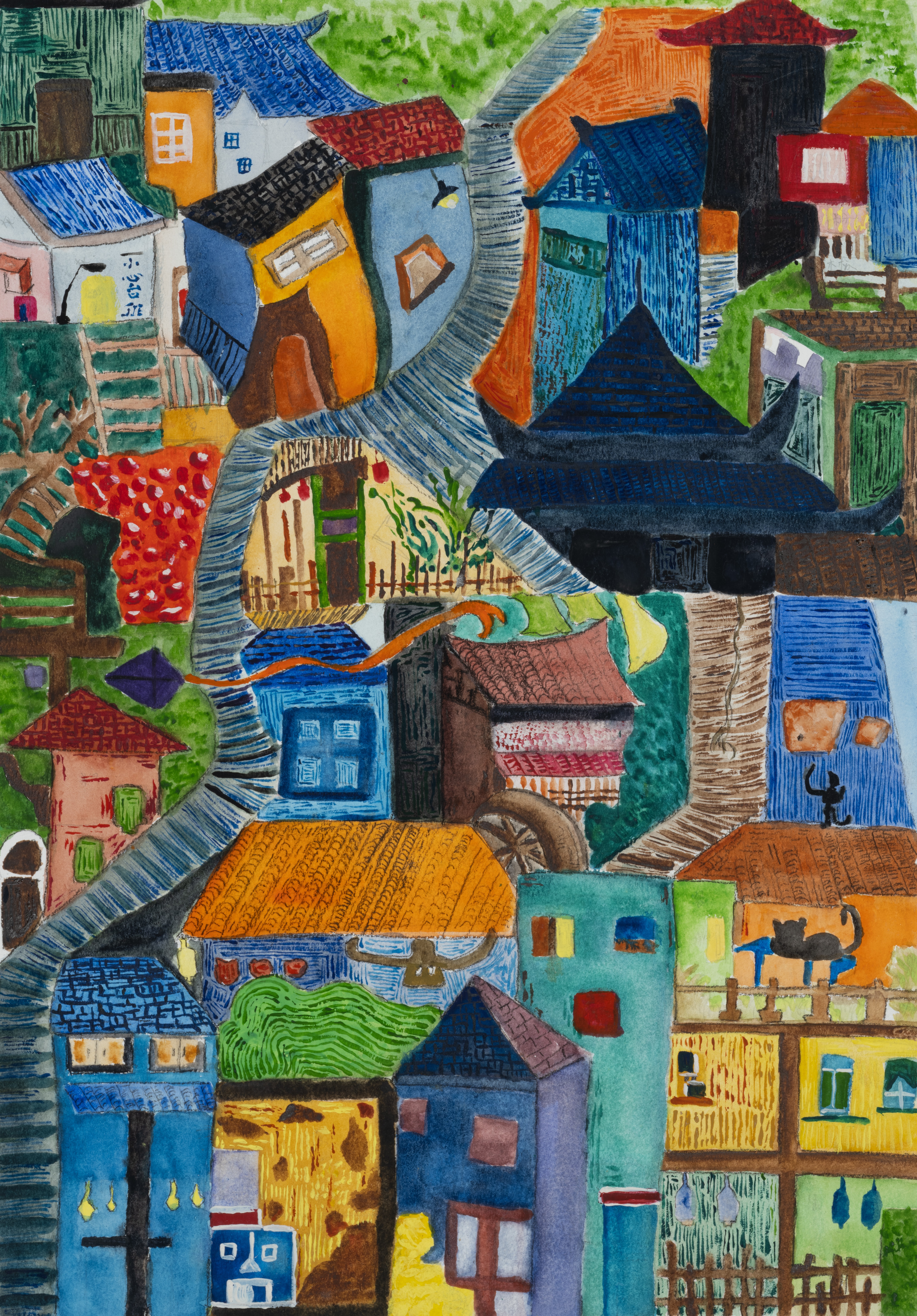 朱思逾,绘画专业,《侗寨》,65x45cm,中国画