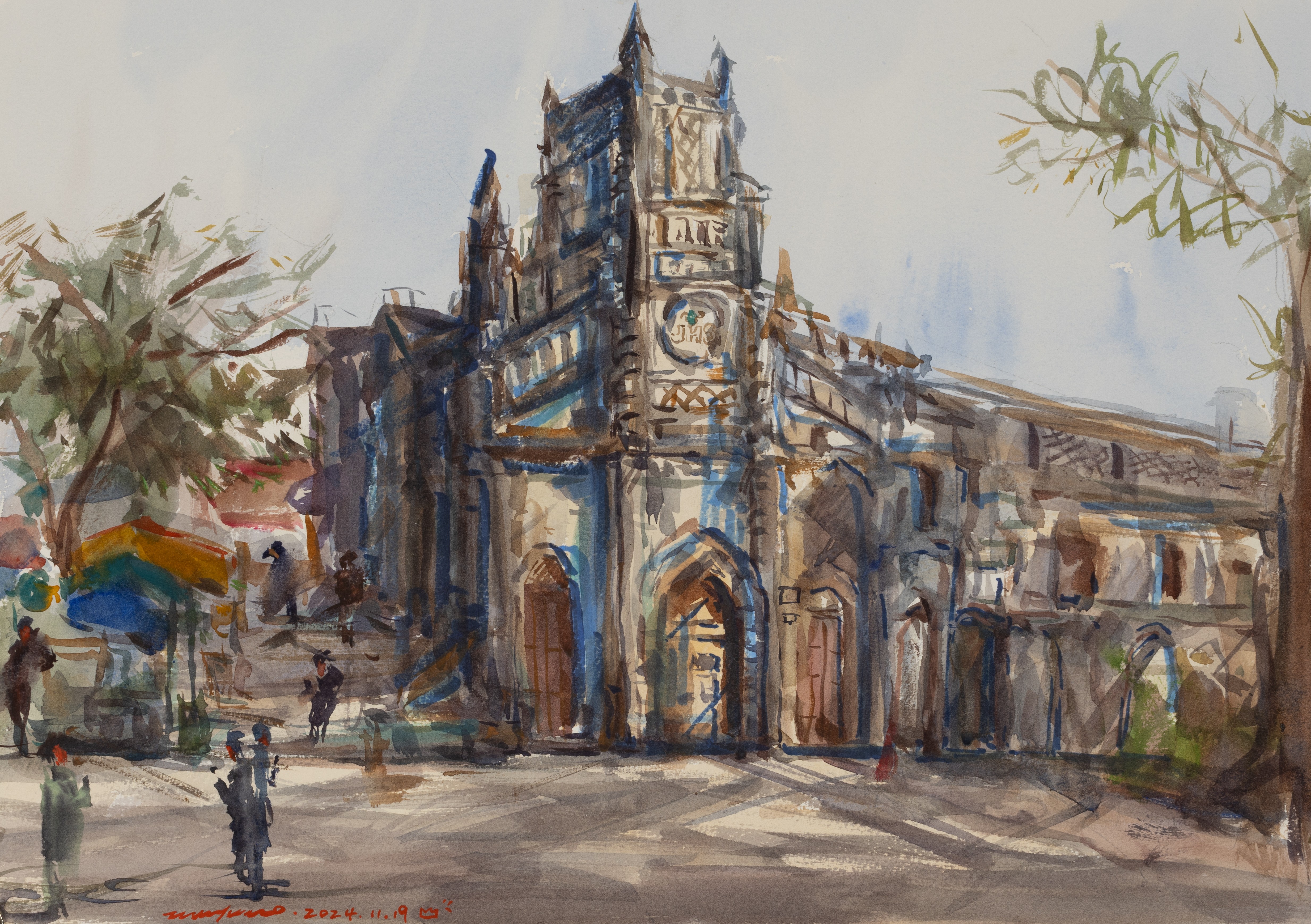 王俊豪,绘画专业,《静谧午后的教堂一侧》,4开,纸本水彩