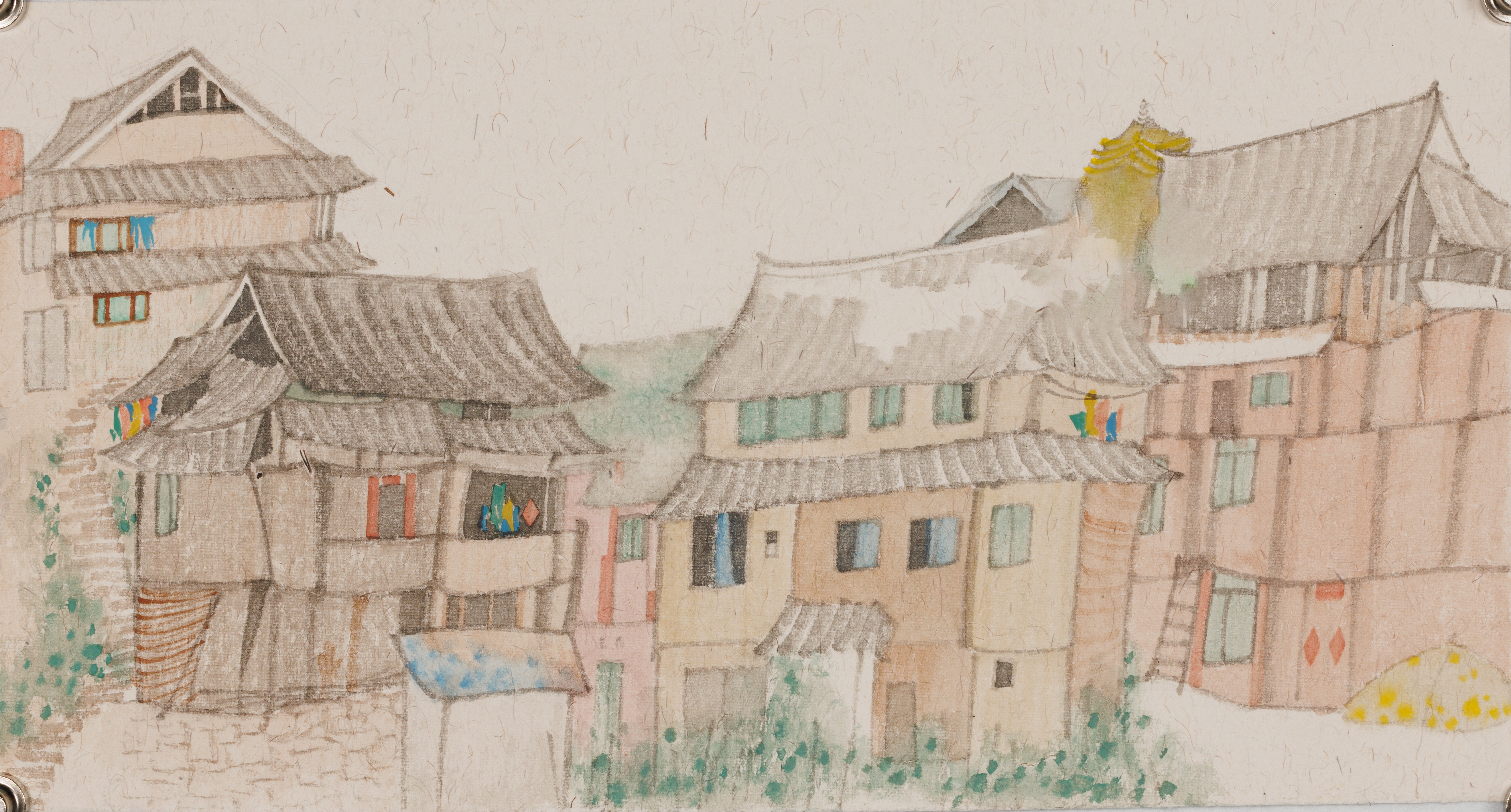 刘佳敏,美术学专业,《侗寨风情》,27x39cm,纸本水彩