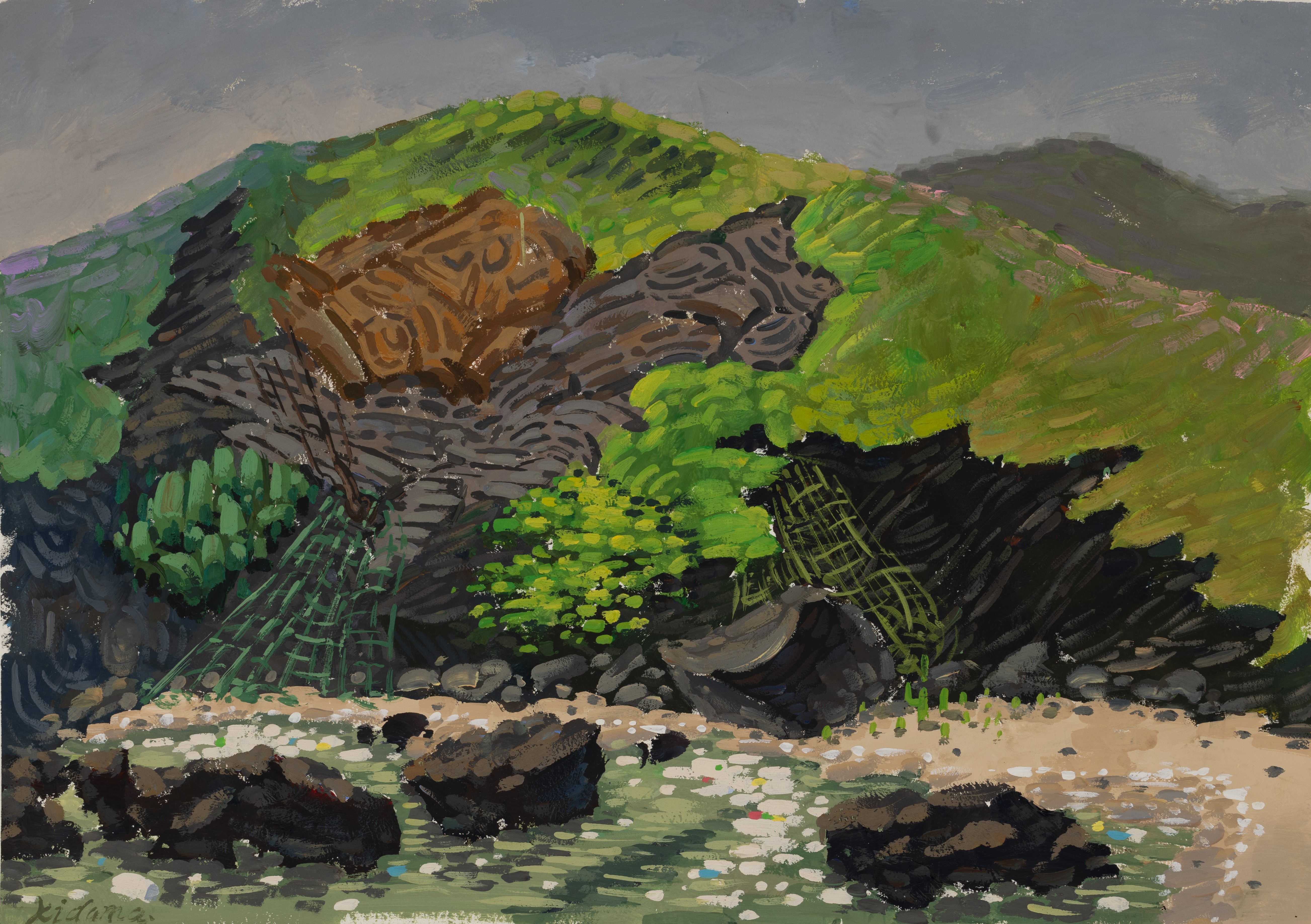 曾坤,雕塑专业,《火山岛》,4开,纸本水彩
