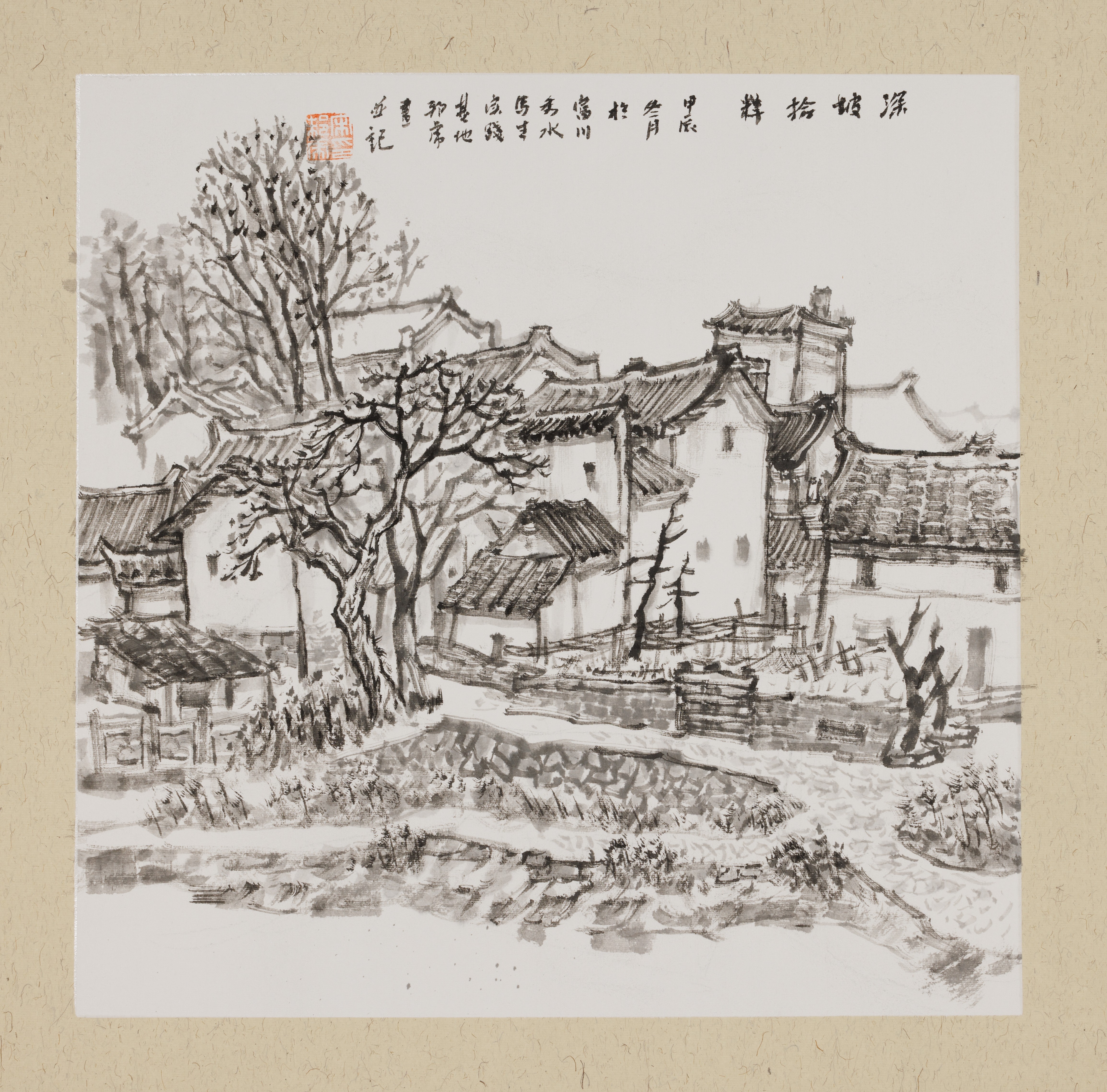 覃小翠,美术学专业,《状元村口》,47x70cm,中国画