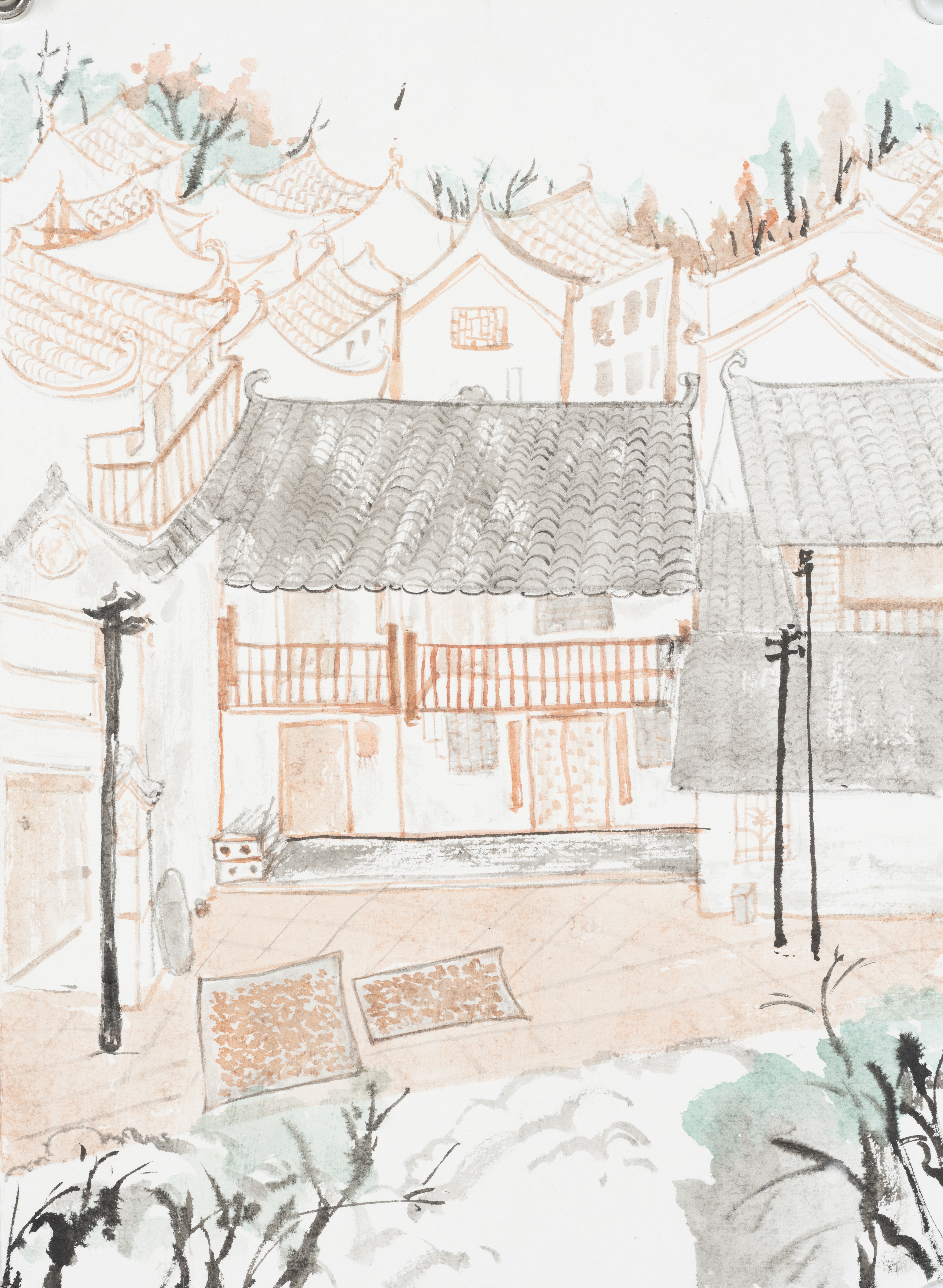 刘芯怡,美术学专业,《古镇静谧》,45x33cm,中国画
