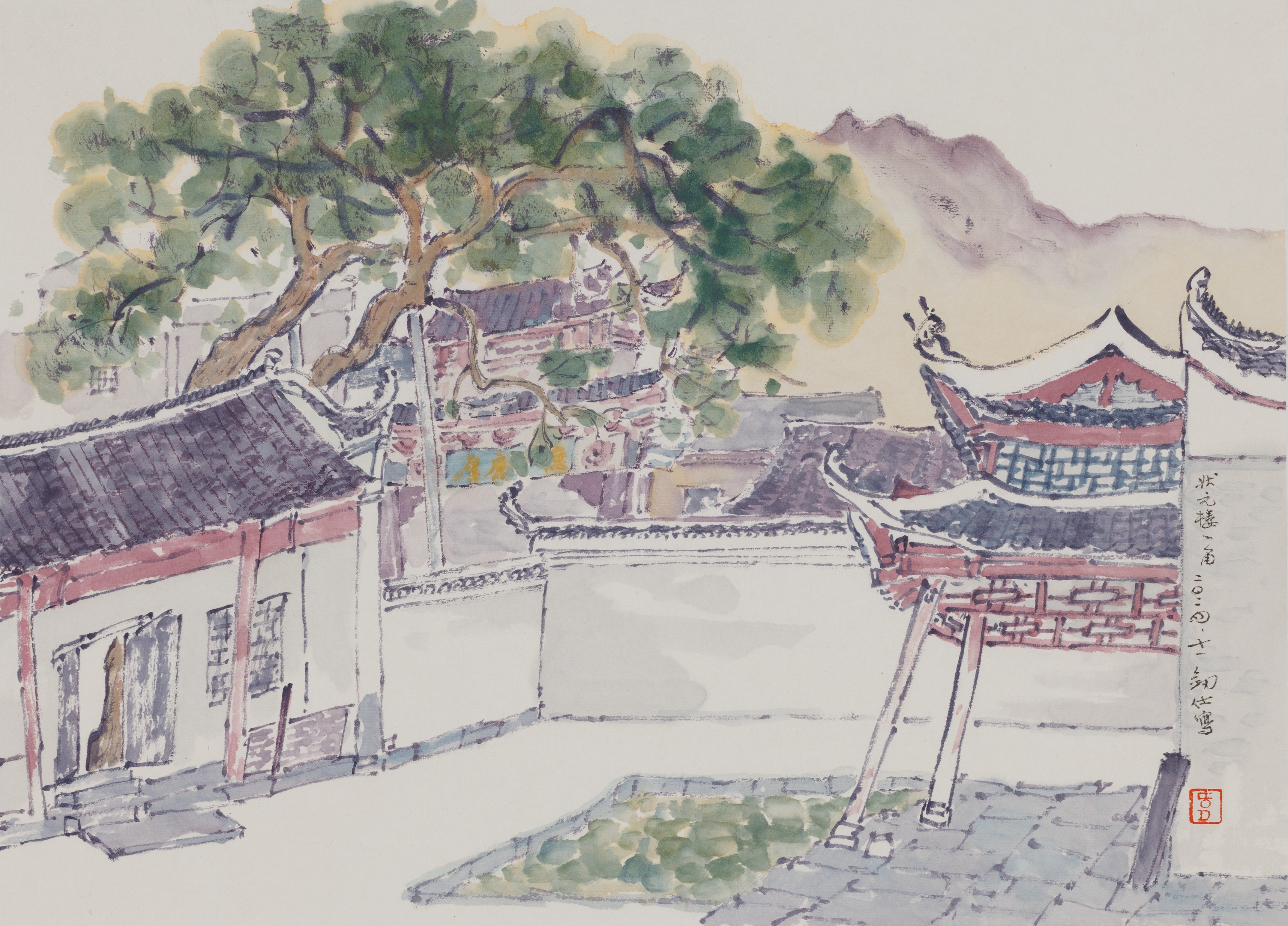 韦剑仕,《状元楼一角》,32.3x45cm,中国画