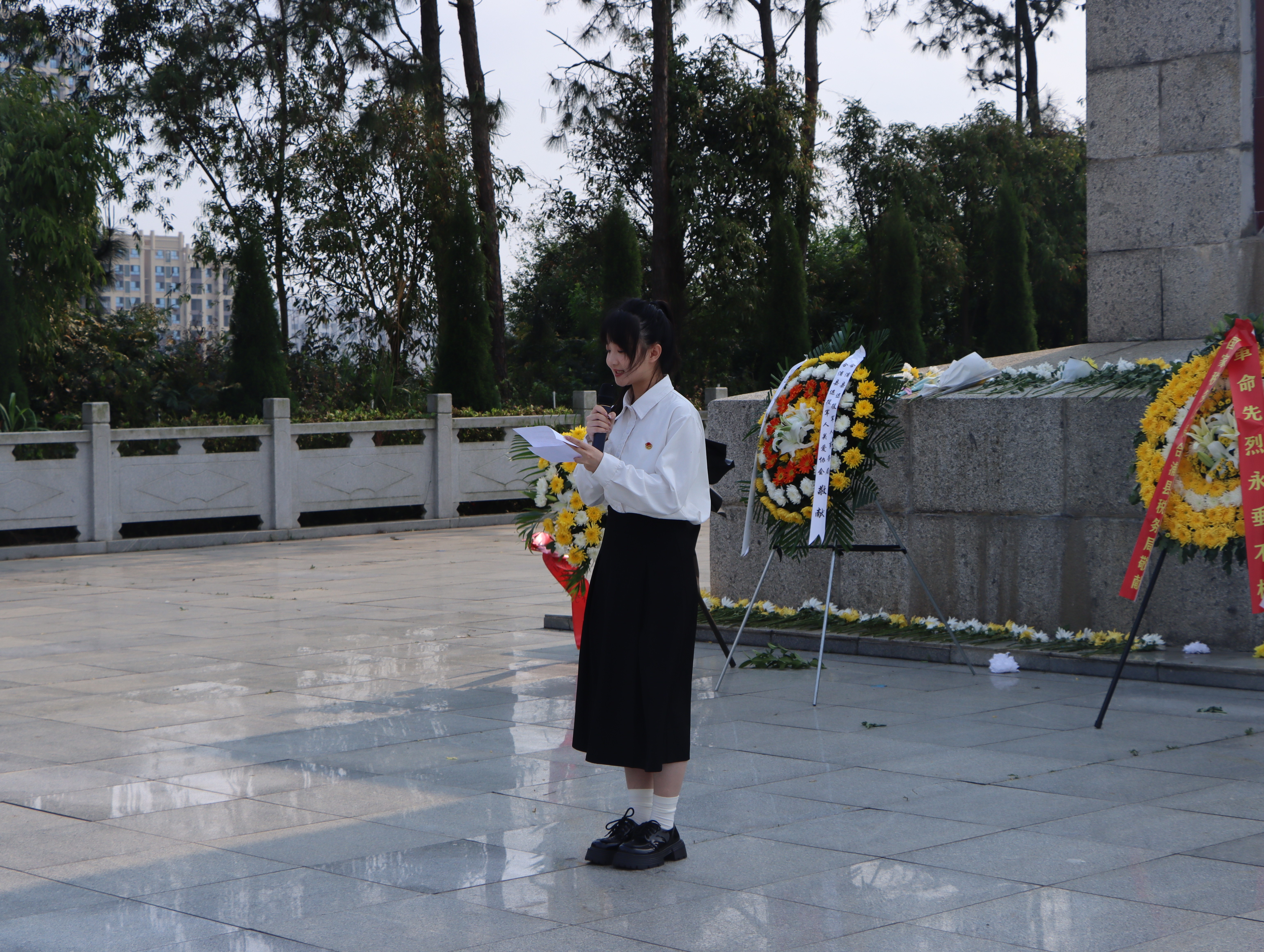 为深入贯彻落实习近平总书记关于烈士褒扬工作重要指示批示精神,缅怀革命先烈丰功伟绩,进一步引导我校师生传承和弘扬伟大的爱国主义精神,树立远大理想,磨练顽强的意志,练就过硬的本领。于4月2日前往合浦县革命烈士纪念碑开展“缅怀先烈寄哀思,踔厉奋发正当时”清明公祭活动,学校党委书记范徽忠、党委委员刘承初、团委书记唐良春以及党团师生代表等100余人参加活动。