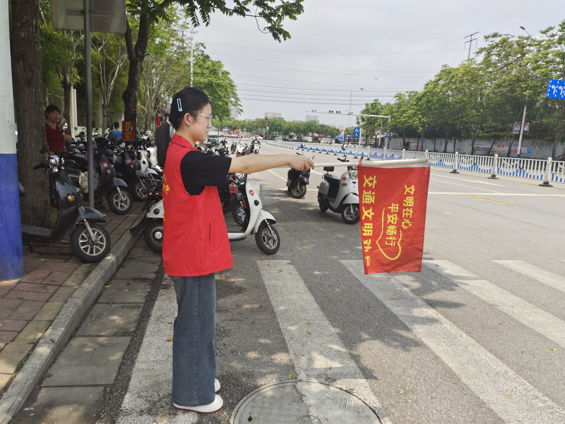 为引导我校师生进一步提升文明素养,共同营造安全、有序、文明、畅通的道路交通环境。每月,我校团委青年志愿者协会持续深入开展文明交通劝导志愿服务活动。