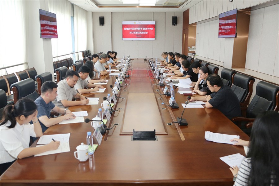 广西艺术学院党委副书记、校长韦俊平对我校一行的到来表示欢迎。他回顾了两校对口支援工作取得的显著成效,表示东盟国家、广西及周边地区对艺术教育有较大的需求,为两校发展提供广阔的空间,两校以往的合作已有良好的基础,下一步,将进一步深化合作,共同发展。广西艺术学院将一如既往地支持北海艺术设计学院的发展。