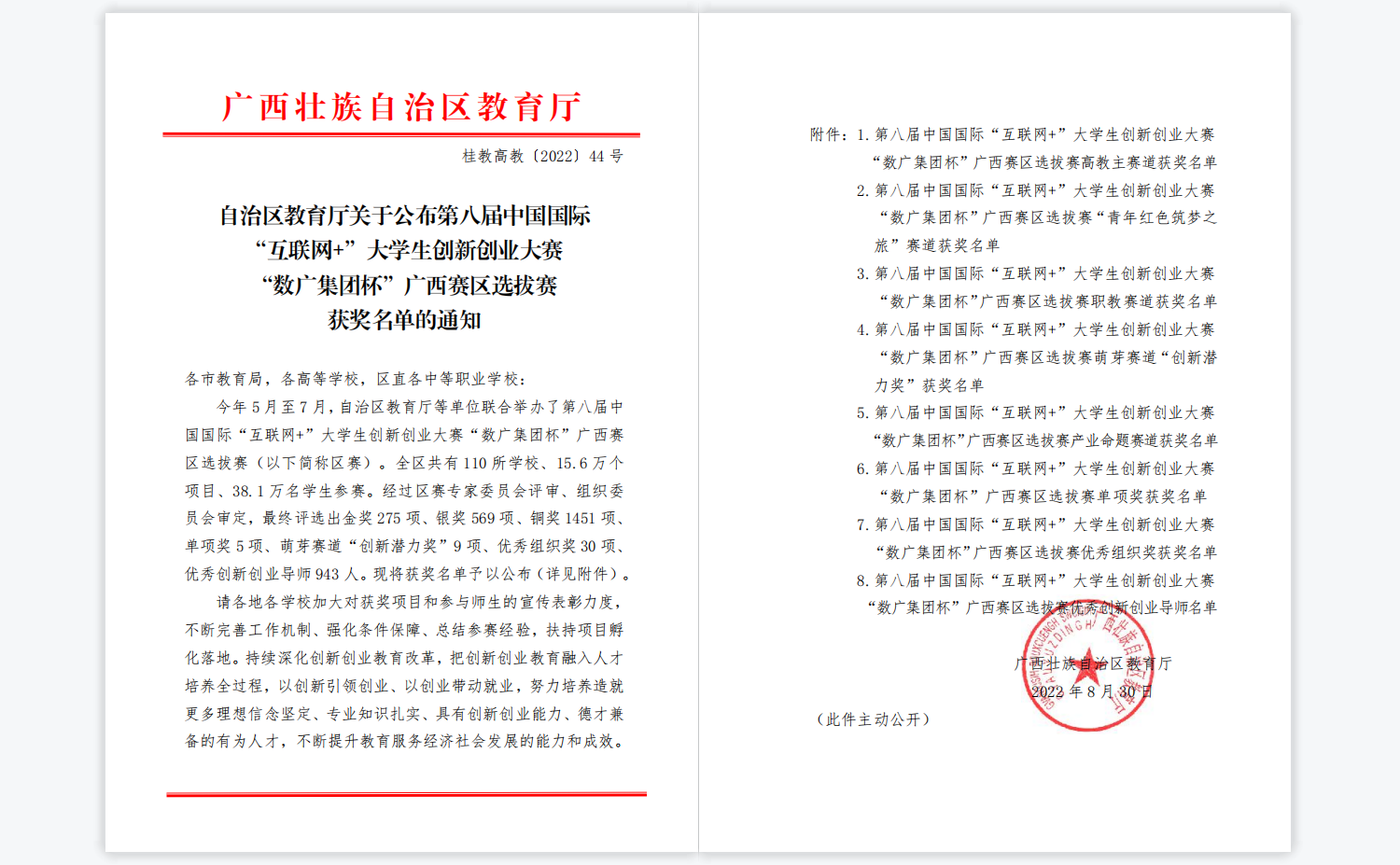 1金!4银!17铜!我校在第八届中国国际“互联网+”大学生创新创业大赛“数广集团杯”广西区赛喜获佳绩