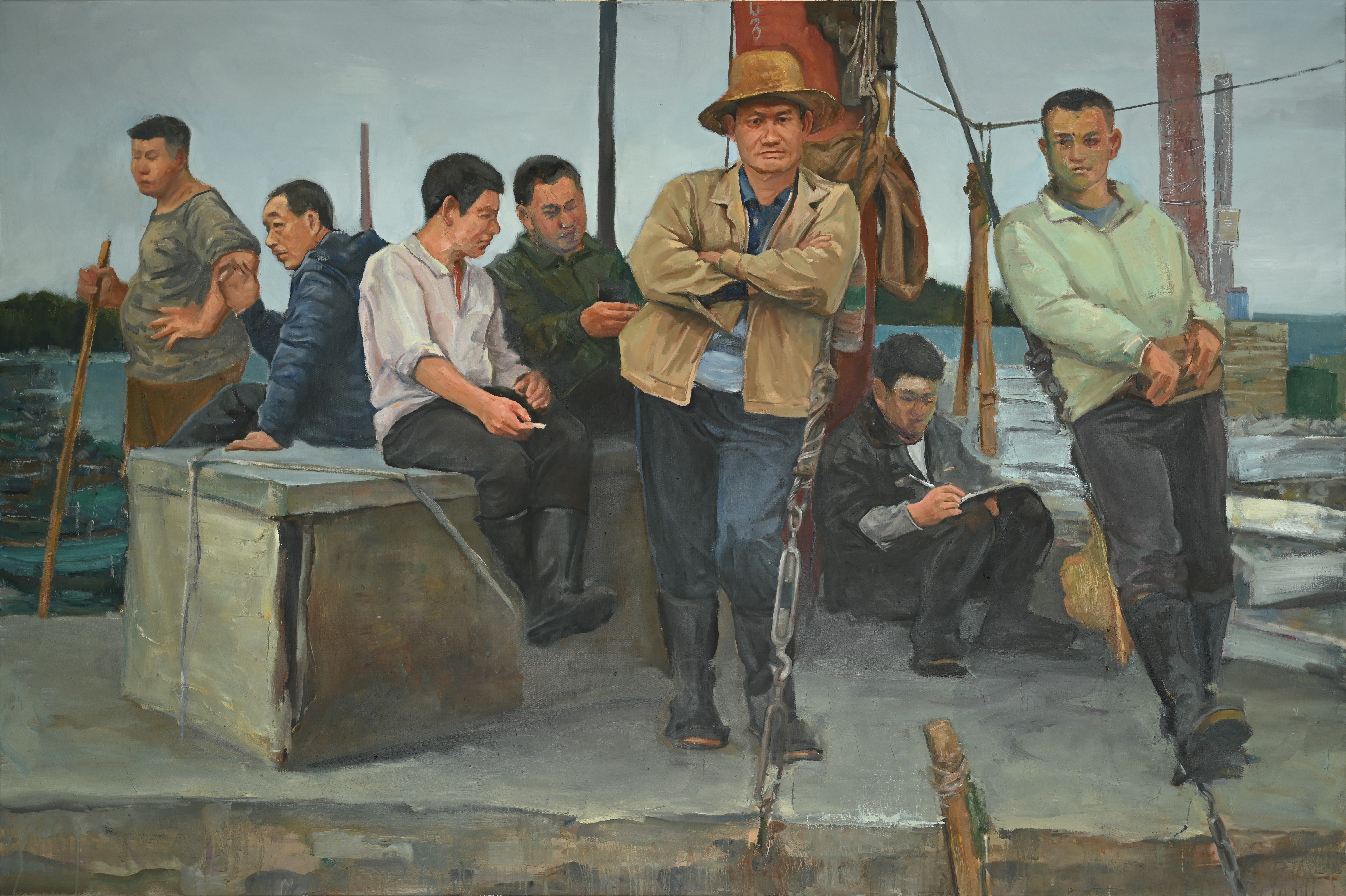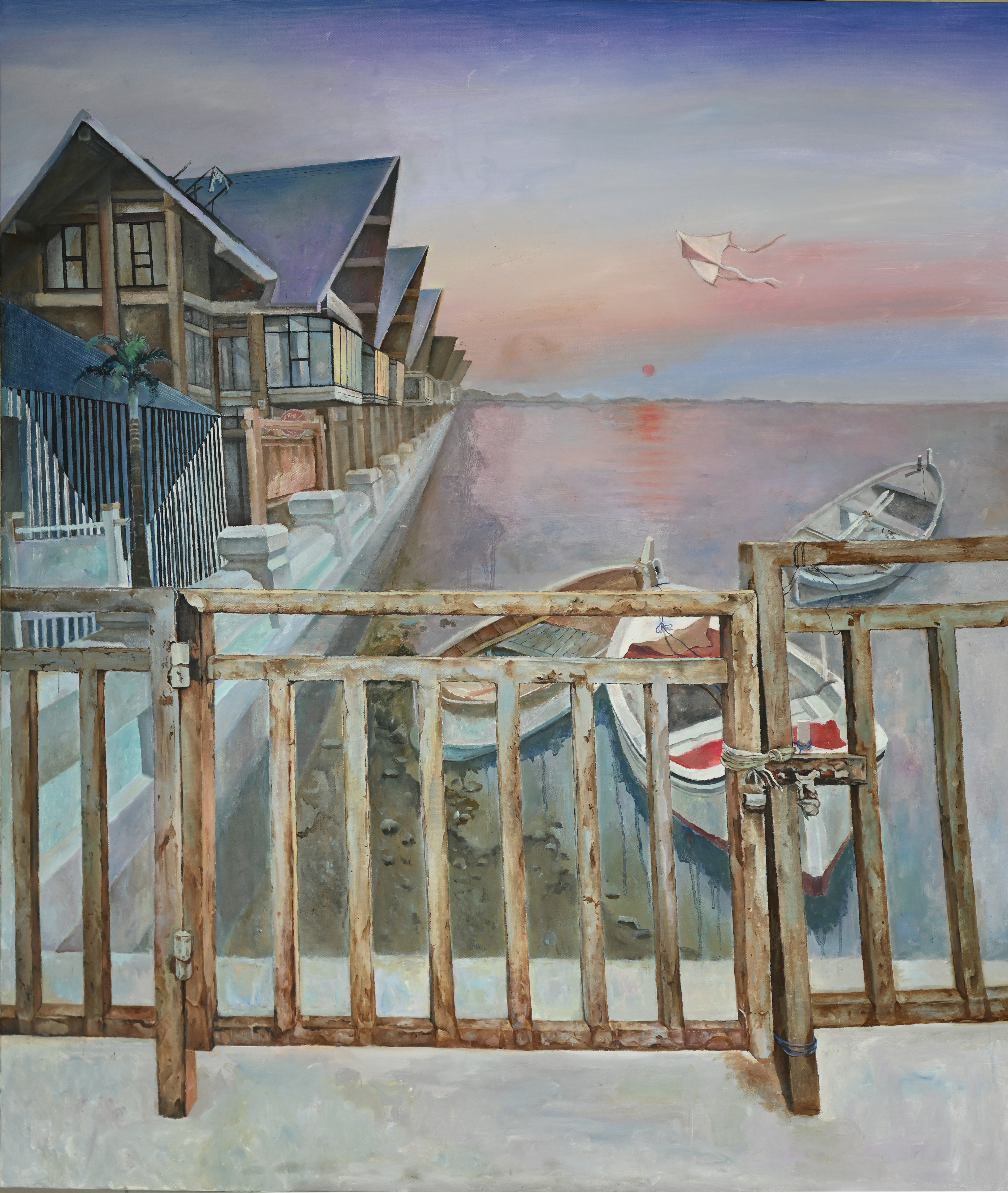 绘画2105班  刘文庆 《渔港记忆》 90×100cm 指导教师:袁志伟