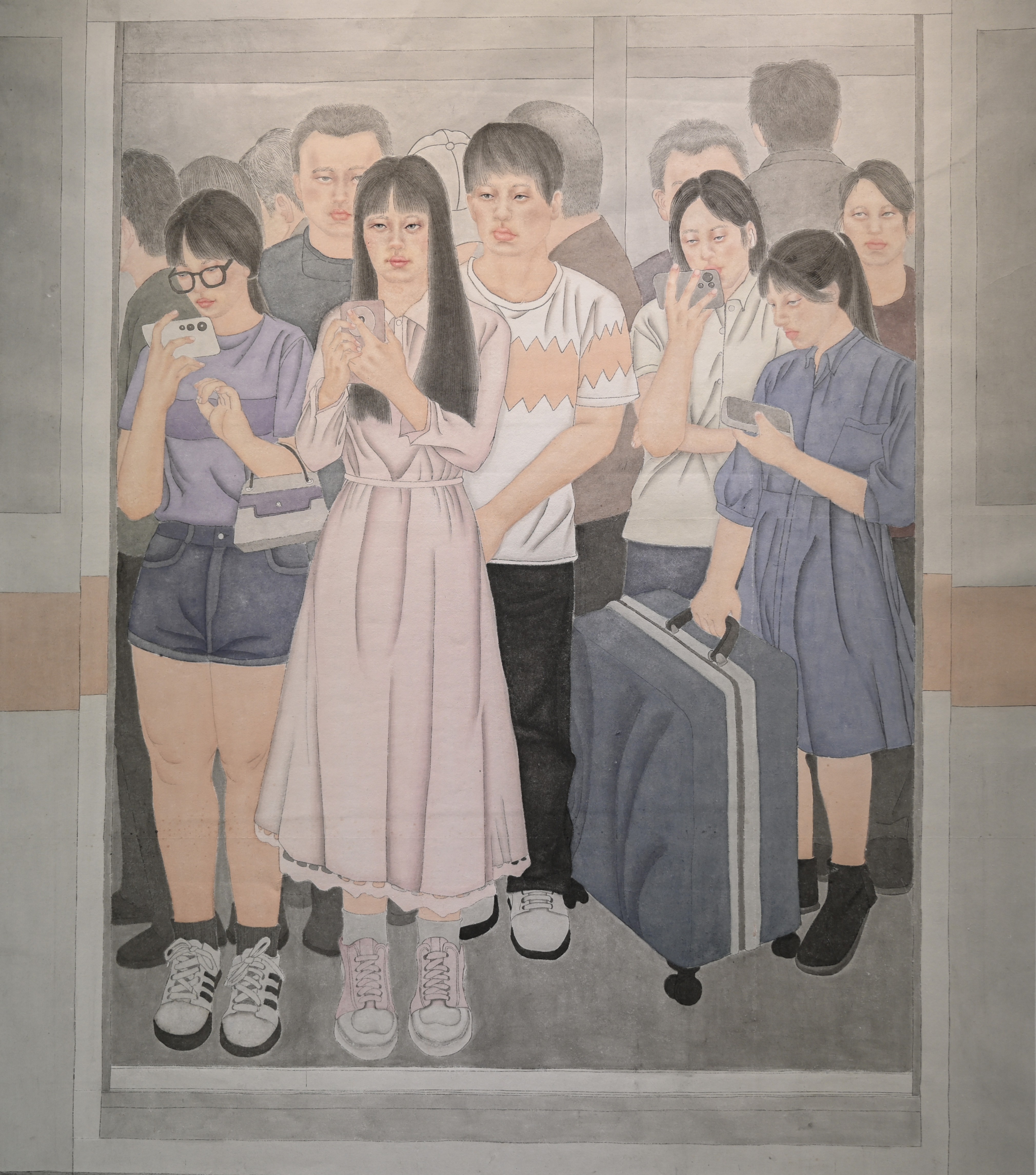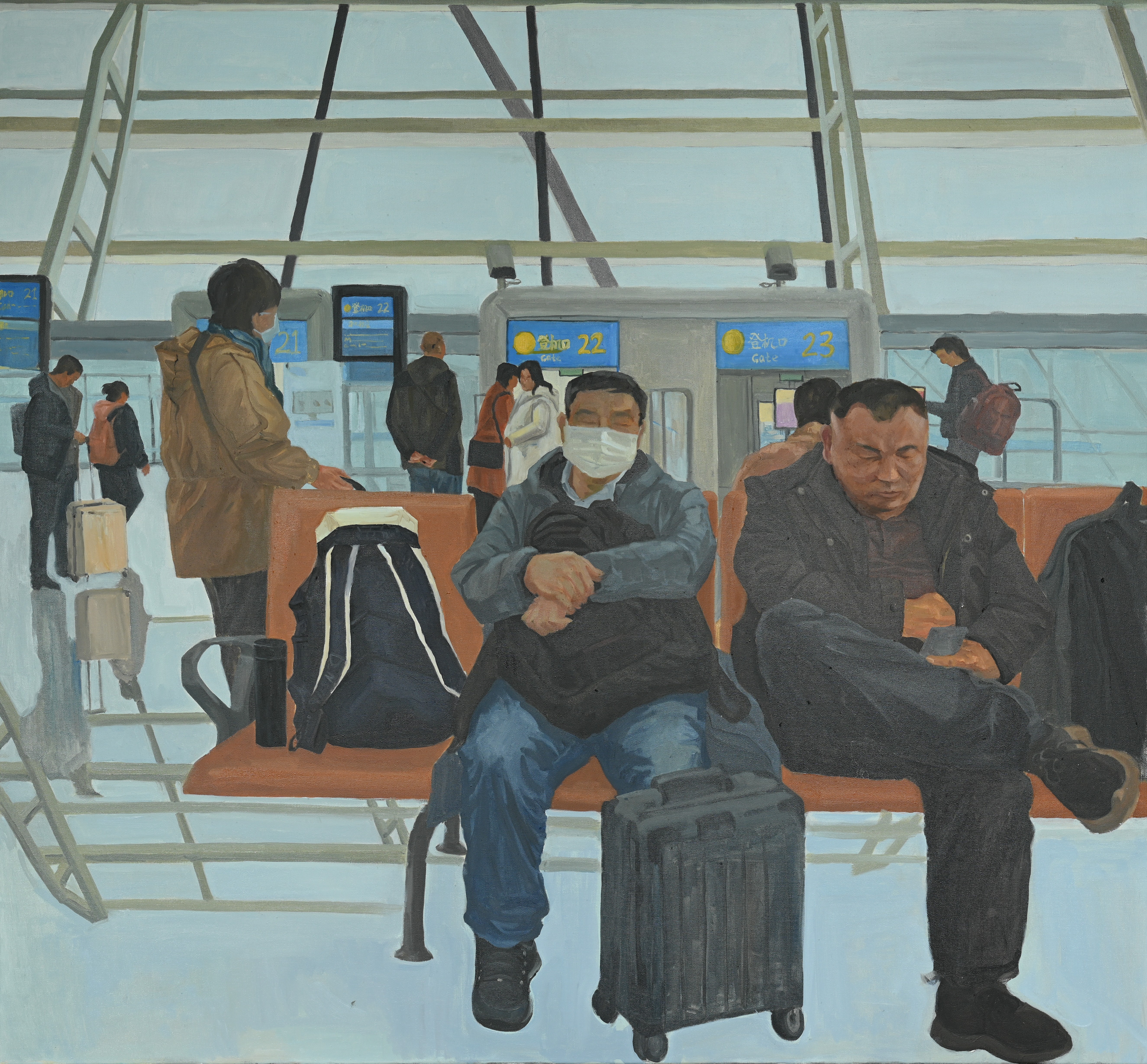 绘画2102班 黎舒琴  《还是等下一趟吧》  150×130cm  指导教师:陈建江