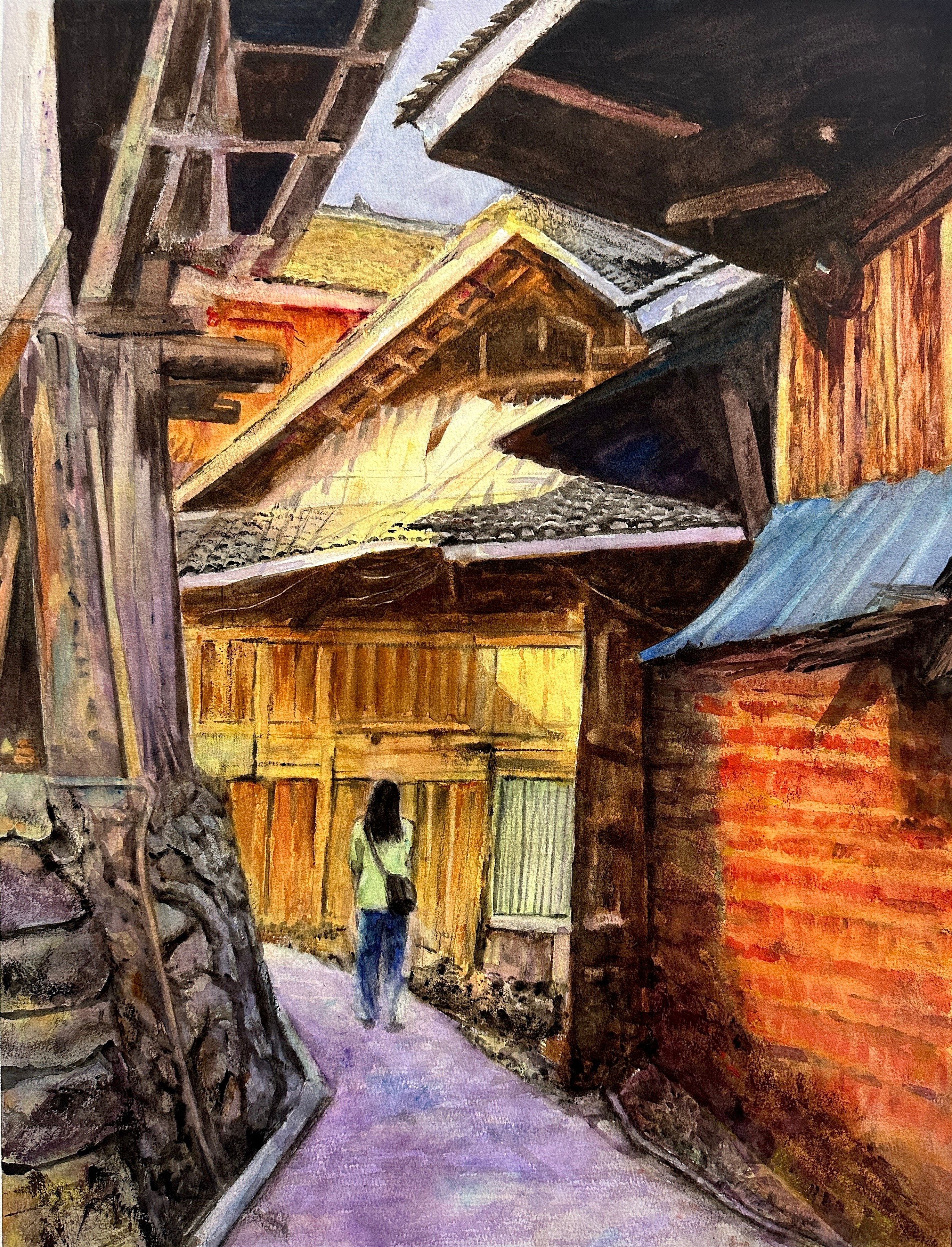 绘画2103班 梁浩 《城中巷》 180×100cm 指导教师:龚为、谢瑞