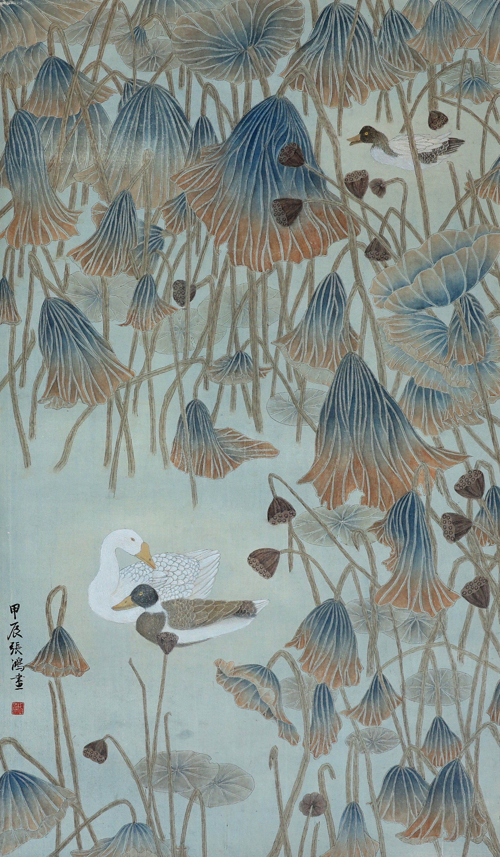 绘画2101班 张鸿 《留得枯荷听雨声》 170×100cm  指导教师:熊晓翠