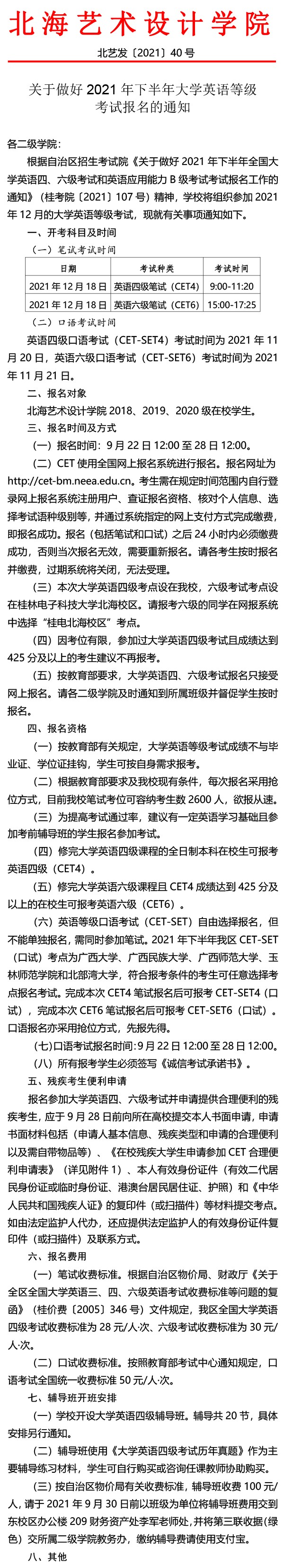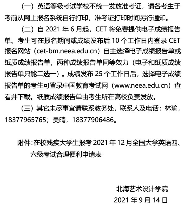 关于做好2021年下半年大学英语等级考试报名的通知
