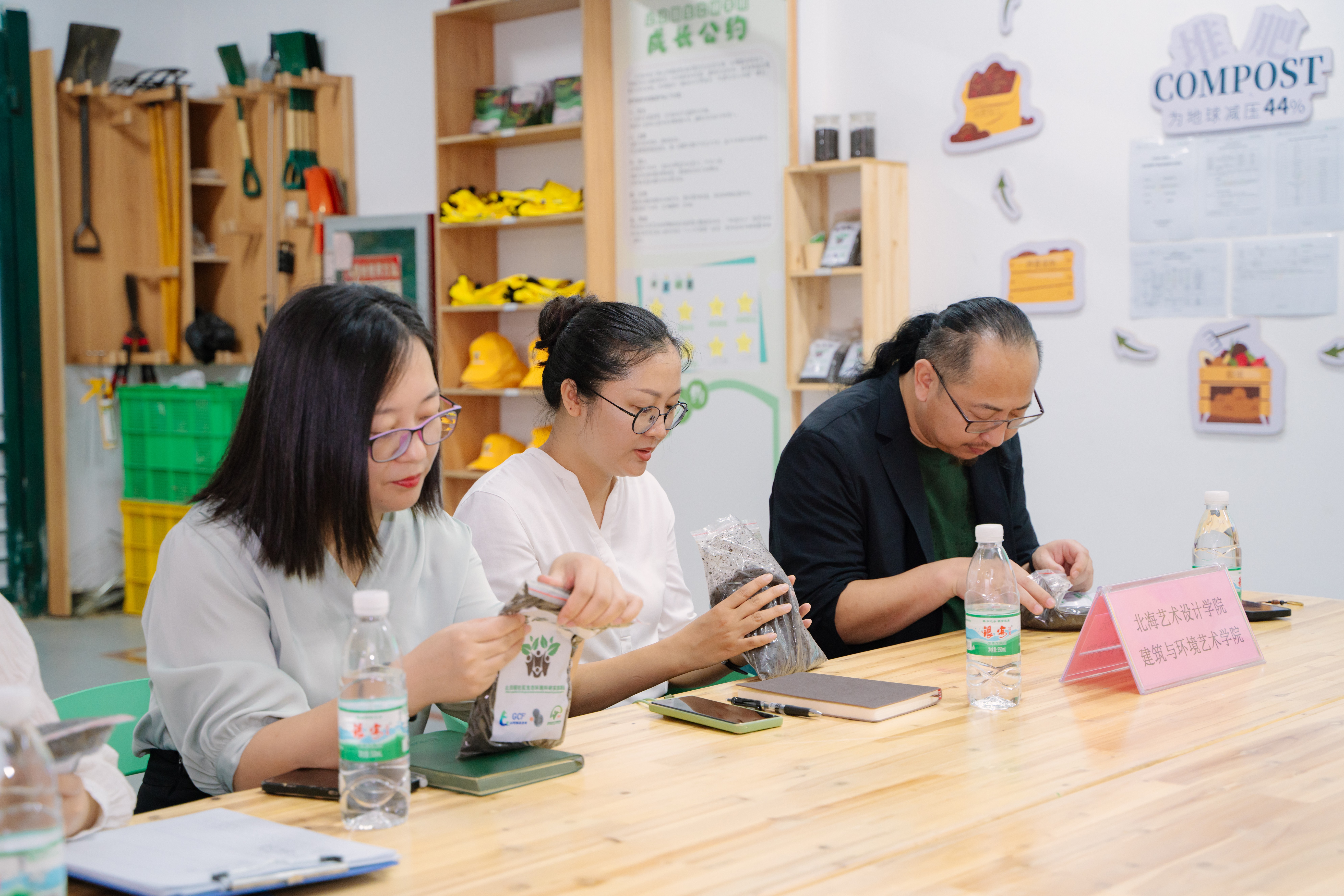 教师们仔细观察生态堆肥产出成果