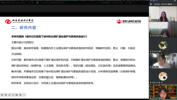 此次开题答辩既是对环境设计专业本科毕业设计(论文)选题质量的集体论证与系统性检验,也是落实学院学术培养要求、强化学生科研素养的重要教学环节。通过与答辩教师的深度学术交流,学生进一步明确了选题的核心价值,优化了研究框架与设计思路,提升了学术表达与问题解决能力,为后续论文撰写、设计实践的顺利推进及学术素养的持续提升奠定了坚实基础。(李二君/摄)