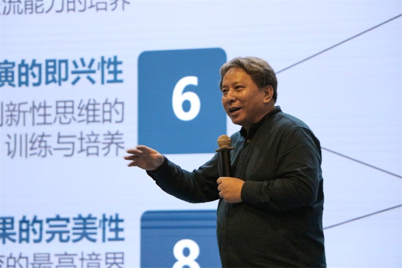 此次讲座,安平教授从六个方面系统性讲授了合唱剧课程。安平教授表示,音乐教育最重要的目的是传承文化,合唱剧是一种新的形式,融合了科达依、奥尔夫和达尔克劳兹等国际音乐教育理念和方法,以合唱为主,独唱和重唱为辅的形式,并结合了戏剧、戏曲、舞蹈、律动、游戏与器乐表演,甚至美术(舞台美术)多种艺术表现。