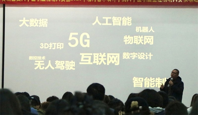 在数字生活的讲授中,曹阳教授指出随着时代的发展,数字被越来越广泛地应用且发挥着巨大作用,数字生活就是智能信息时代。曹阳教授提到,他们团队追求的是小剂量、系列化、电子化、差异化设计,在设计过程中采用讲故事的方法找到流量,让消费者理解到设计背后的故事进而被吸引。曹阳教授表示,每一个设计师都是一个流量,一个会讲故事的人。他启示现场师生学会思考,善于抓住数字生活的发展机遇。