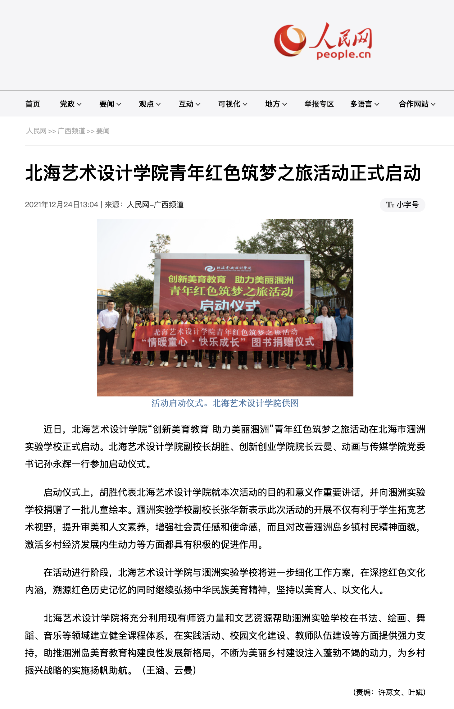 人民网:北海艺术设计学院青年红色筑梦之旅活动正式启动