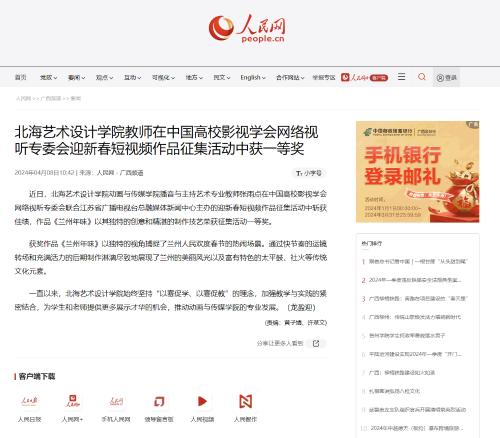 人民网:北海艺术设计学院教师在中国高校影视学会网络视听专委会迎新春短视频作品征集活动中获一等奖