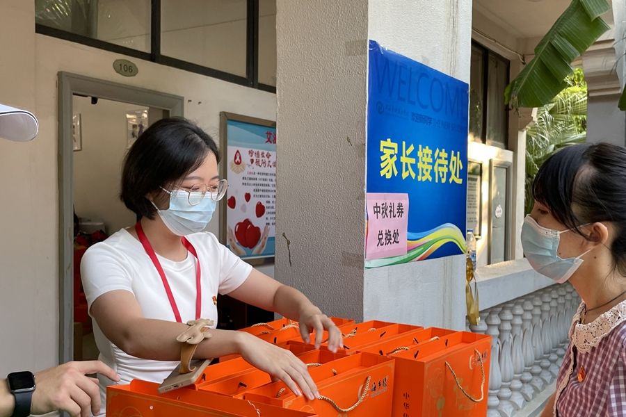 同学,办水卡吗?同学,来来,这边也可以办理校园一卡通!同学,请问是学费刷卡吗?同学,过来领取中秋礼品:一盒月饼、一箱海鸭蛋!同学,你好,需要购买生活用品吗?家长,您好,请问有什么可以帮助您?......办水卡、办校园一卡通、学费刷卡、发放中秋礼品、协调安排宿舍、卖生活用品,这些就是马克思主义学院迎新党员教师的主要工作任务,他们工作中一个个温暖的声音和一张张热情的笑脸,在热闹的校园里格外突显。