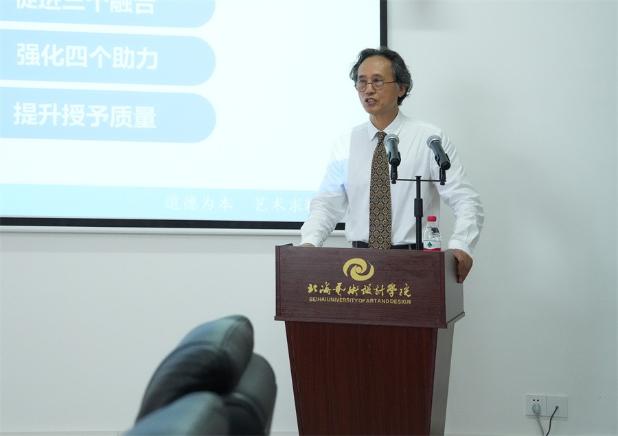 在学校新增学士学位授权专业评估工作反馈会上,专家组组长曾冬梅表示,各专家组成员按照自治区学位委员会申请新增学士学位授予专业实地考察工作程序和《广西壮族自治区学士学位授权审核标准》(桂学位〔2022〕5号)要求,经过充分讨论和评议,一致认为,学校办学定位准确,办学思路清晰切实可行;办学规模不断优化,办学条件不断改善;教学管理制度规范,本科专业建设卓有成效;多学科协调发展,特色专业优势明显;人才培养质量稳步提高,社会评价良好,对此次新增学士学位授权专业中的美术学、书法学、播音与主持艺术、汉语言文学、哲学5个专业审核评估工作顺利通过。专家组还就学校今后发展的努力方向提出了意见和建议,希望学校进一步优化学科专业师资结构和整体水平,深化教育教学改革,加强特色专业内涵建设,加强高水平科研项目和科研成果培育,提升专业教学科研水平。