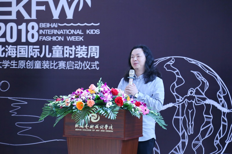 胡胜副校长代表学校为启动仪式致辞,对2018国际儿童时装周抱以热切的期待。他强调,北海国际儿童时装周-大学生原创童装比赛旨在培养学生的创新能力和实践能力,并给大学生提供国际化的展示平台,希望通过本次比赛实现自己学生阶段的目标与确定人生的职业规划和梦想。将实现个人的实践价值与社会职务相结合,为社会贡献原创的力量和时尚的精神。