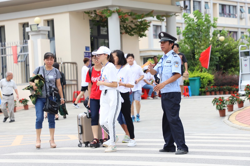 在新生接待过程中,校园安保人员在门卫处及校园各处进行巡逻,确保校园人流有序的进行,保障学校工作人员和新生的人身安全及财产安全,提防校外不法分子的进入,为校园安全做了有力的保障。校园宿管阿姨也为新生接待奉献出自己的一份力量,提早打扫干净宿舍环境,准备迎接新生入住。