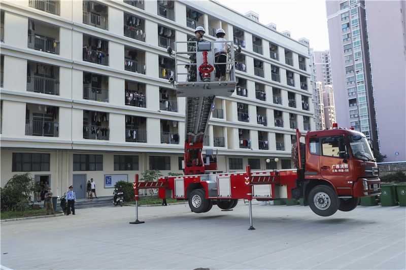 参加此次演练的单位和人员有北海市银海区消防大队电建渔港中队,学校各职能部门、各二级学院领导老师,以及全校学生。