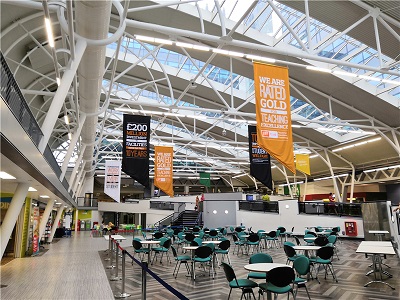 胡胜副校长一行首先访问了德比大学人文与艺术学院,考察团在德比大学国际交流中心王女士和艺术学院媒体部主管Chas Andrews-Roberts的陪同下参观了德比大学设计(艺术)与人文学院。对商业摄影、电影与电视学、音乐及多媒体技术、建筑学与建筑环境、产品设计、视觉传达设计、时装和纺织品(全英排名第三)等专业和相关实训工作室进行实地走访。另外,考察团对校园整体环境、校体育馆也进行了实地考察。德比大学优美的校园环境、完备的教学设施和良好的学习氛围都给考察团众人留下了深刻的印象。