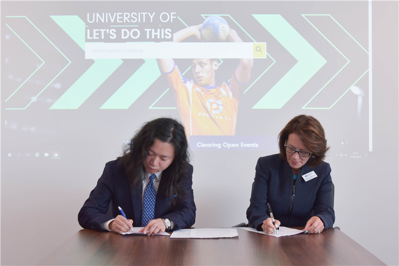(我校执行董事郑超与英国德比大学常务副校长Dr.Judith签约)