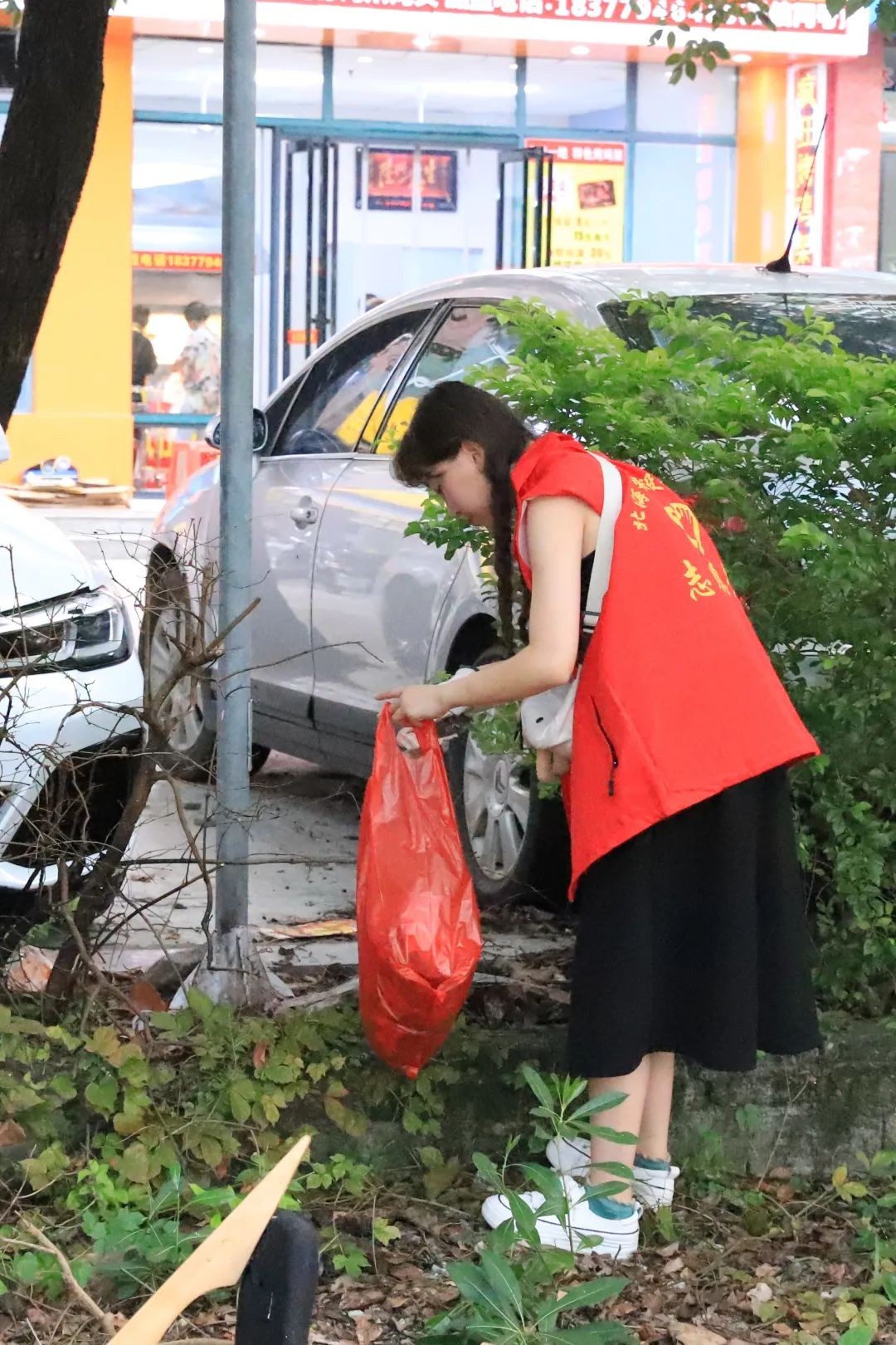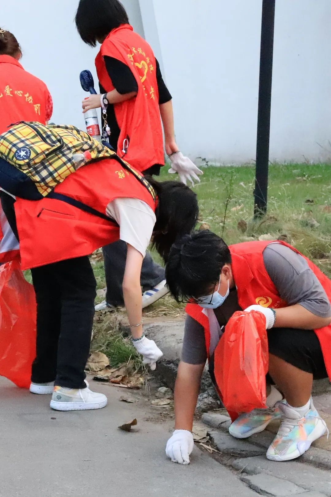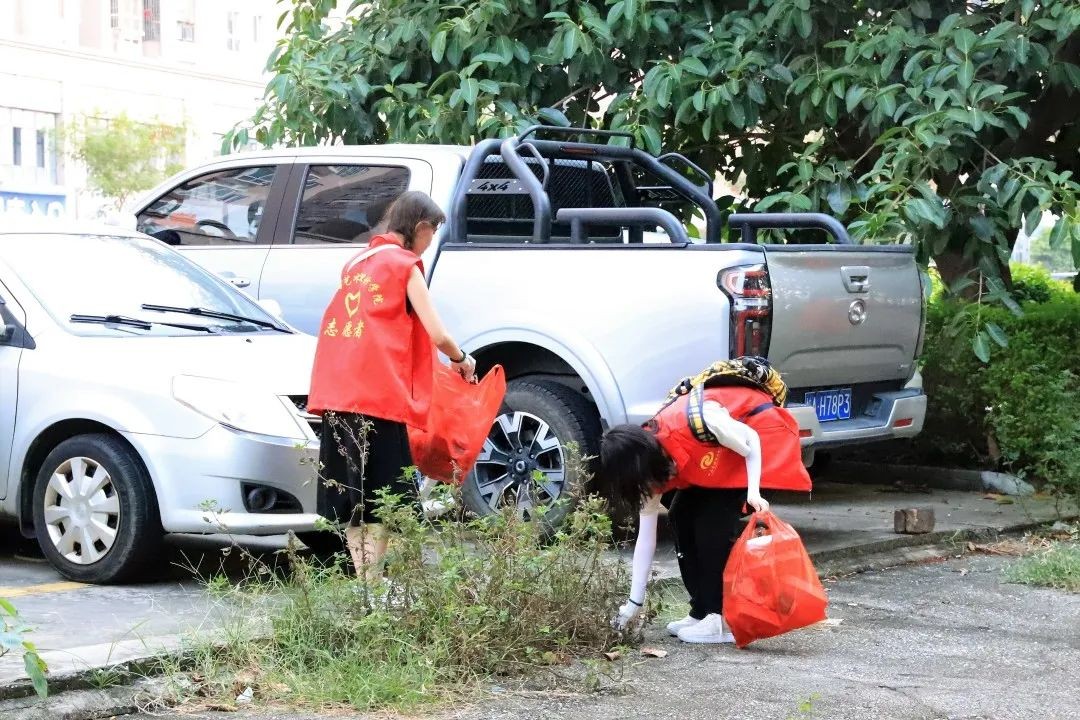 志愿者们手持垃圾袋,钳子等工具,对人行道、绿化带的烟头、废纸片等垃圾进行仔细清理,为街道清洁努力贡献着自己的力量,用实际行动助力创城工作、践行志愿精神!