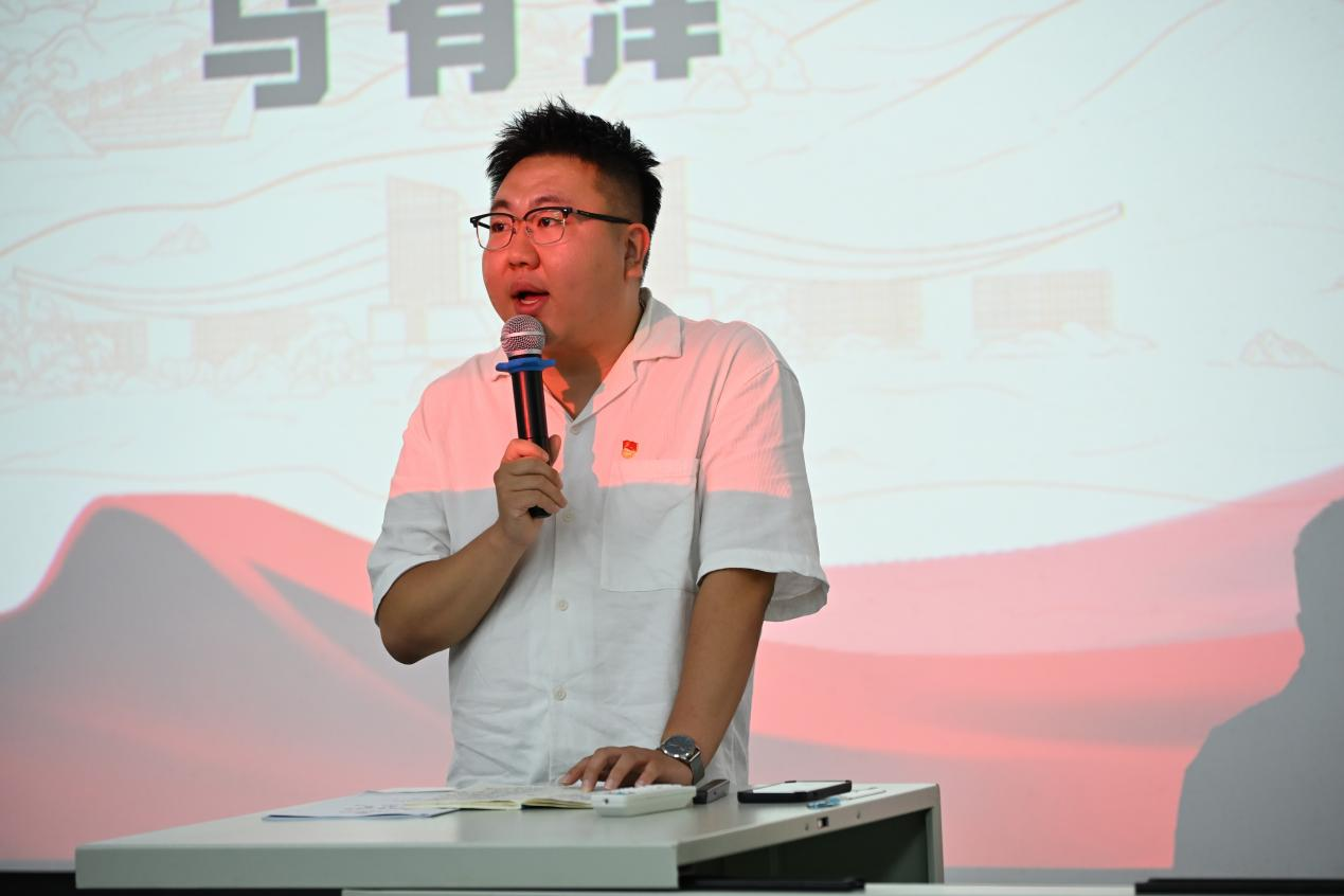 会议伊始,文学院党支部书记岳莹为大会致辞。岳书记首先对分团委成员在过去一年中的辛勤付出给予充分肯定。无论是迎新志愿活动中烈日下的执着坚守,还是团支部深入社区促进文化融合的不懈努力,亦或是积极参与学院各类展览与会议的忙碌身影,成员们的辛勤付出始终清晰可见。她指出,要切实做好“老带新”工作,将宝贵的工作经验传授给新加入的干事,以助力他们更快、更好地融入分团委的工作环境。同时,希望成员们珍视分团委这一平台,把握宝贵机会,持续提升个人能力,展现文学院学子的青春风采 。