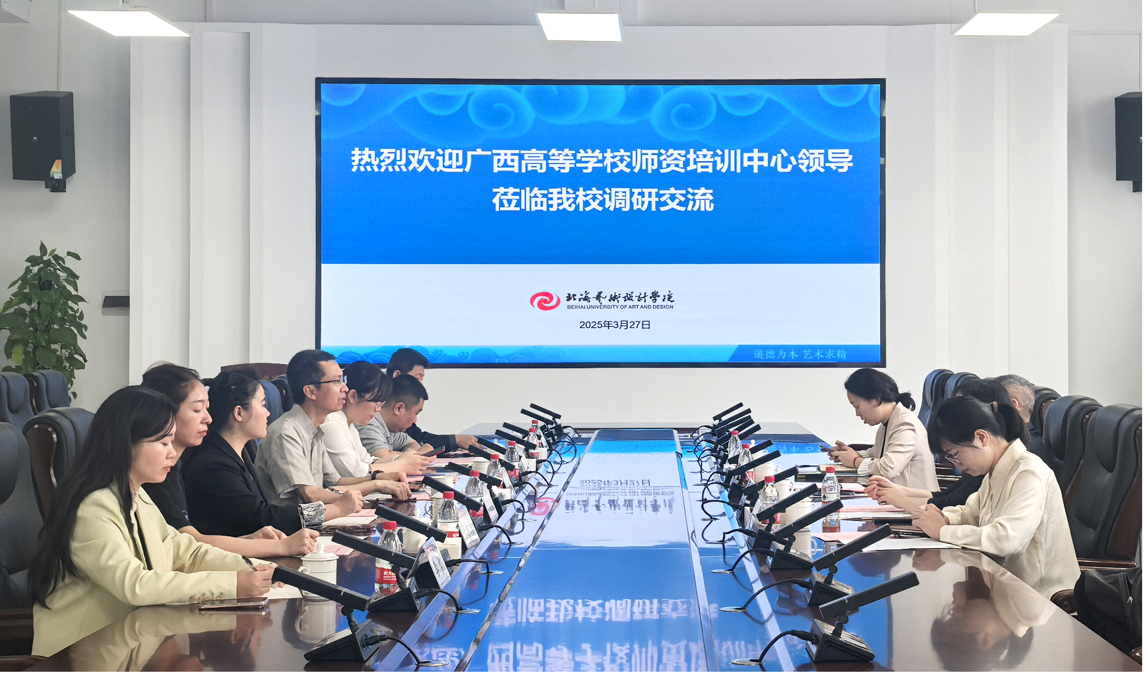 3月27日上午,广西高等学校师资培训中心专职副主任廖宏伟、副主任闫若婻、秘书廖薇、干事韦鉴玲莅临我校,就师资培训工作开展专题调研。我校分管副校长黄侃明、人事处处长屈志鑫、科长钟延明、科长李菁蔓,参培学员代表白建强、李雪共同参会协同探索师资发展新路径