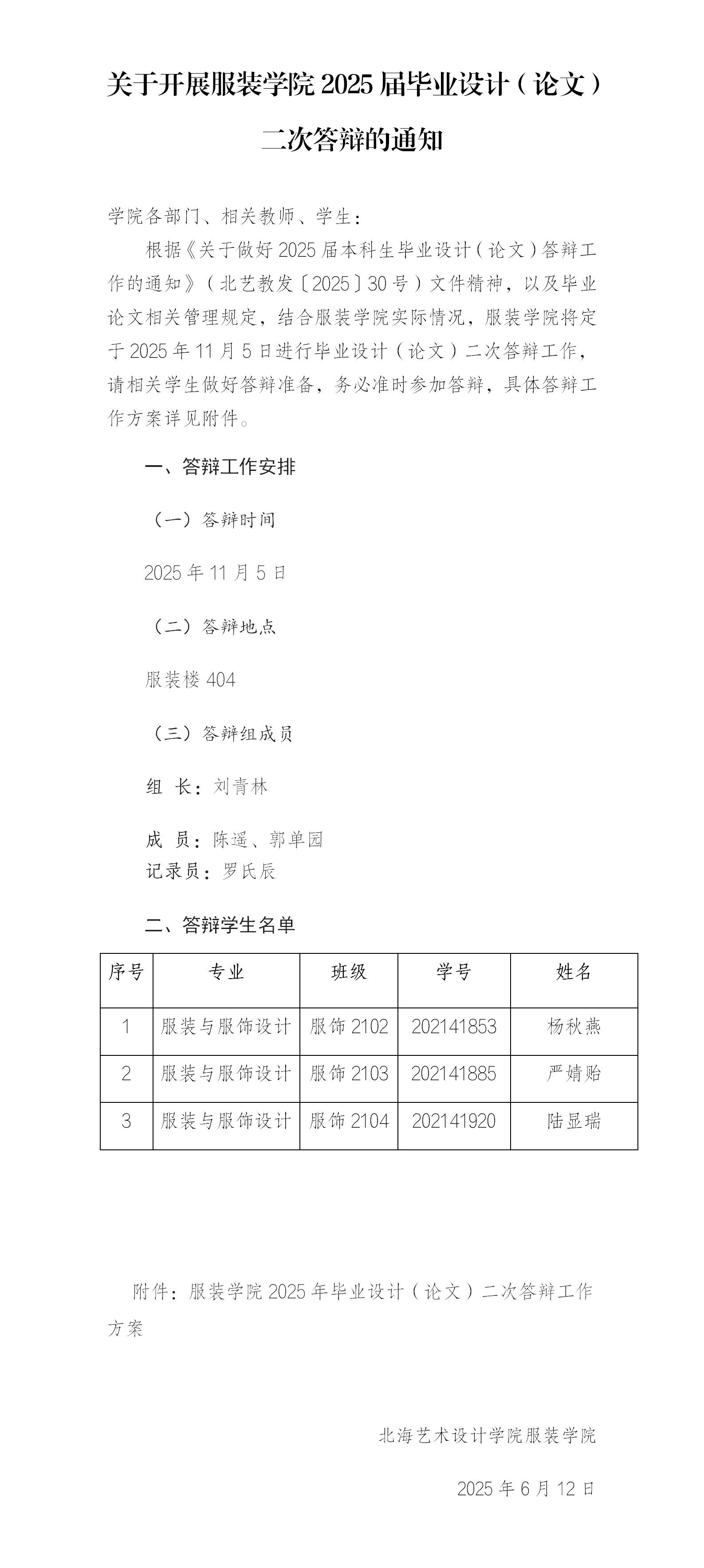 关于开展服装学院2025届毕业设计(论文)二次答辩的通知