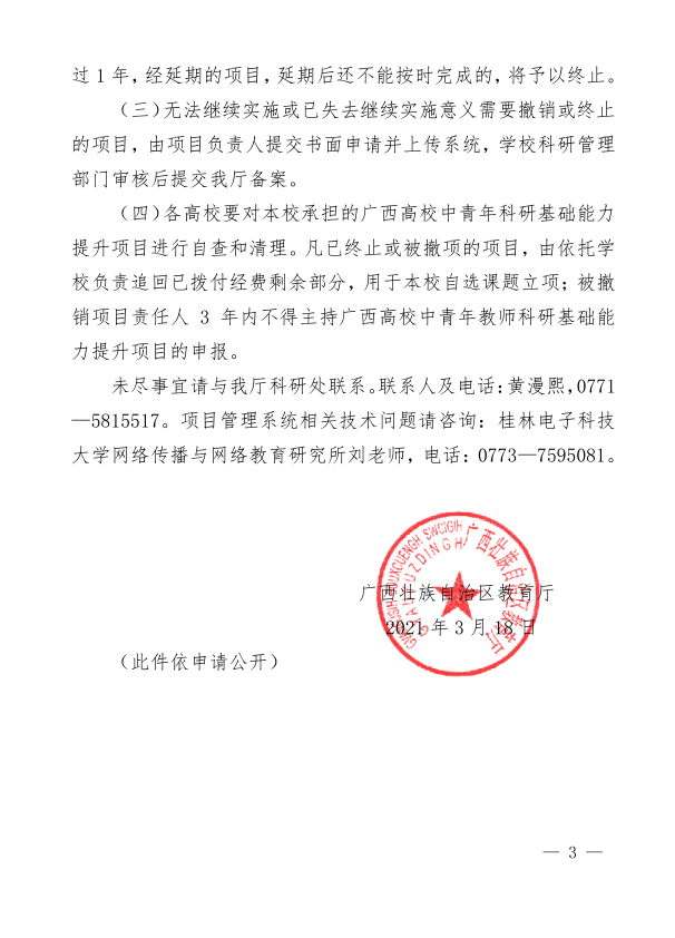 自治区教育厅关于做好2021年广西高校中青年教师科研基础能力提升项目结题工作的通知