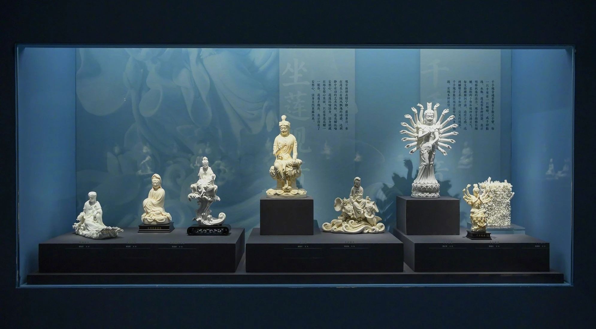 本次展览共展出逾400件(套)古代至现代的德化白瓷,分为「一白独秀」和「百技争艳」两个单元,展现德化瓷精湛的制瓷技艺和一脉相承的传承创新。重要展品包括「何朝宗」款观音像、「筍江山人」款观音等传世精品,以及尾林窑遗址、华光礁一号沉船等出土、出水的德化瓷文物。