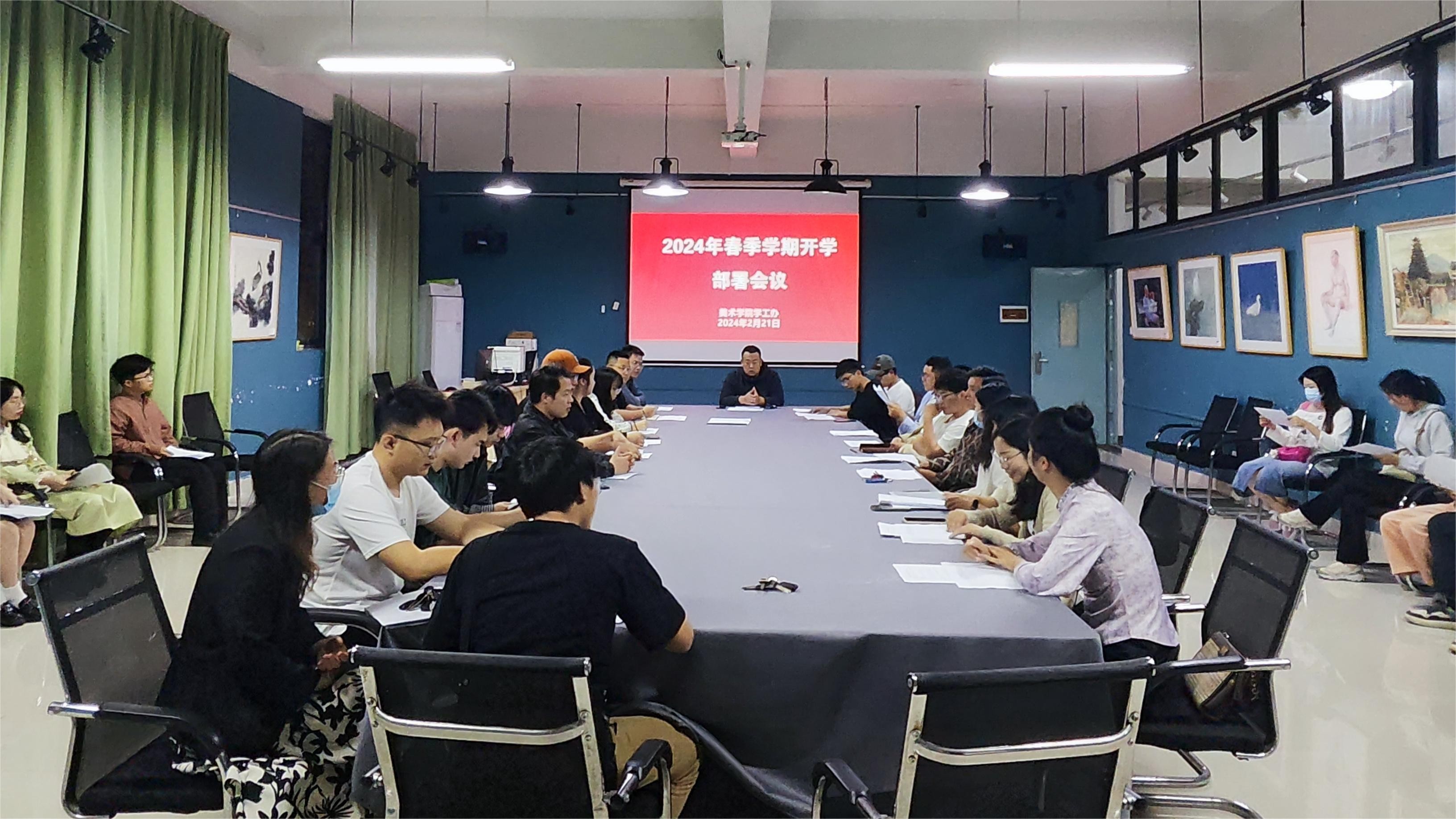 2024年2月,美术学院召开春季开学工作部署会议,会议由第五党总支副书记鲁明阳与美术学院学工办主任林昌华主持,美术学院2021-2023级班级辅导员参与会议。