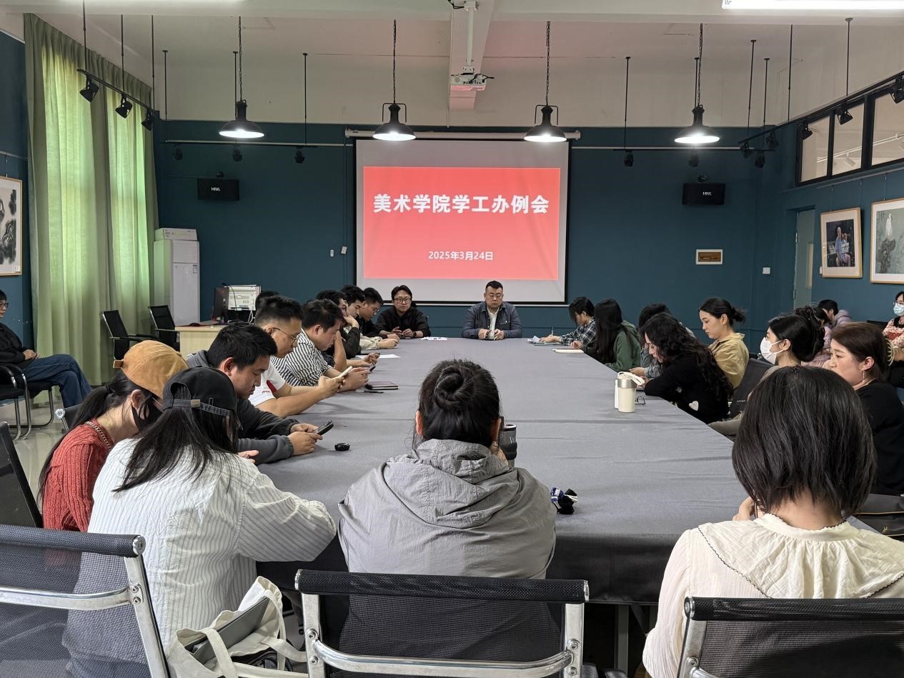324日,美术学院学工办于艺术楼313召开新学期工作部署会,会议由美术学院党总支副书记鲁明阳主持,学工办教师及各班级辅导员参加会议。