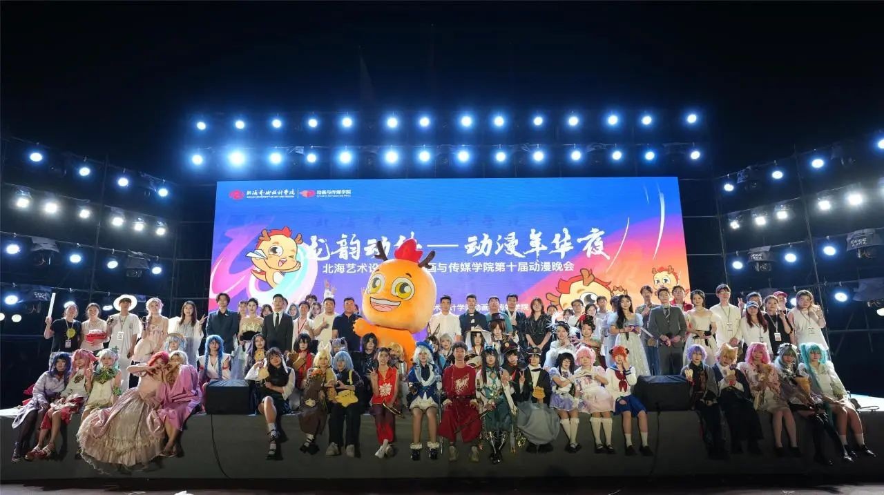 4月26日,一场别开生面的动漫盛宴“龙韵动传——动漫年华夜”在北海艺术设计学院西区足球场上演。此次活动由动画与传媒学院精心策划,不仅打破了传统舞台表演的框架,更以“白日梦”“创意集市”“狂欢夜”三大板块的巧妙融合,为观众带来了一场梦幻、热血、创意并存的二次元之旅。