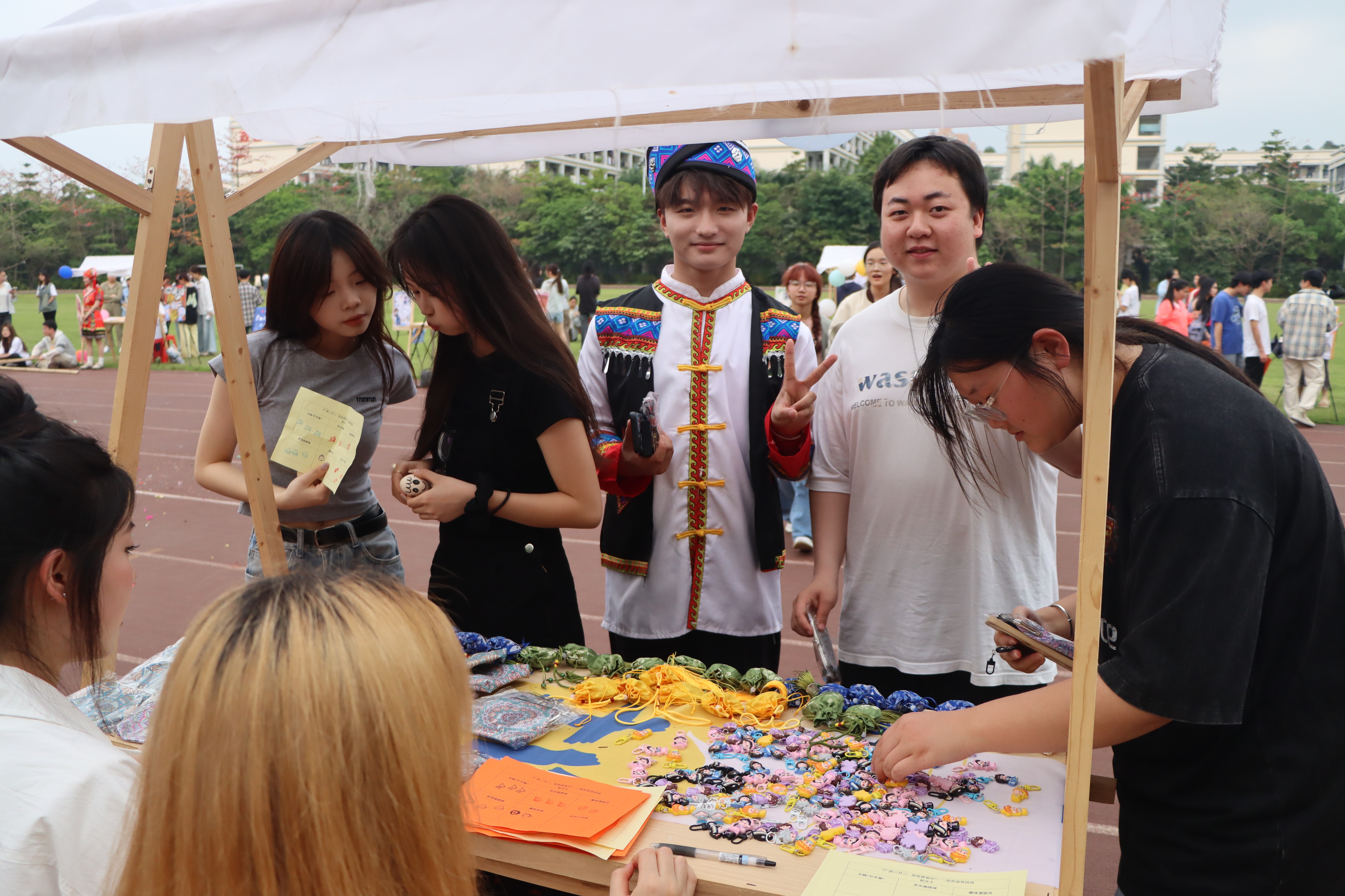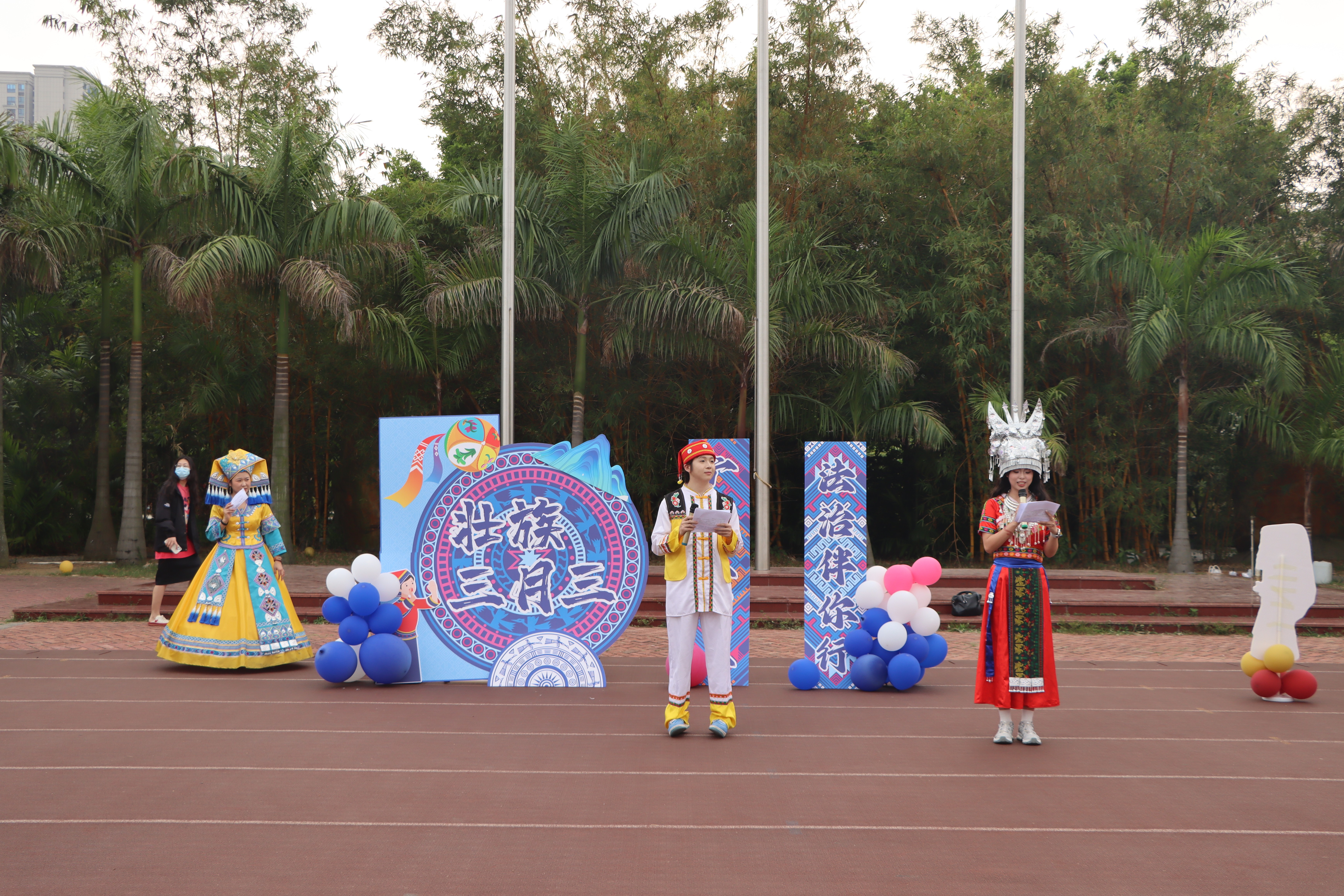 三月三,春风拂面,花香四溢,北艺的校园里洋溢着欢乐与喜庆的氛围。3月28日,为庆祝三月三的到来,进一步弘扬传统民族文化,将法治宣传与民族团结教育紧密结合,我校于西区操场开展以“广西三月三,法治伴你行”为主题的法治宣传游园活动。