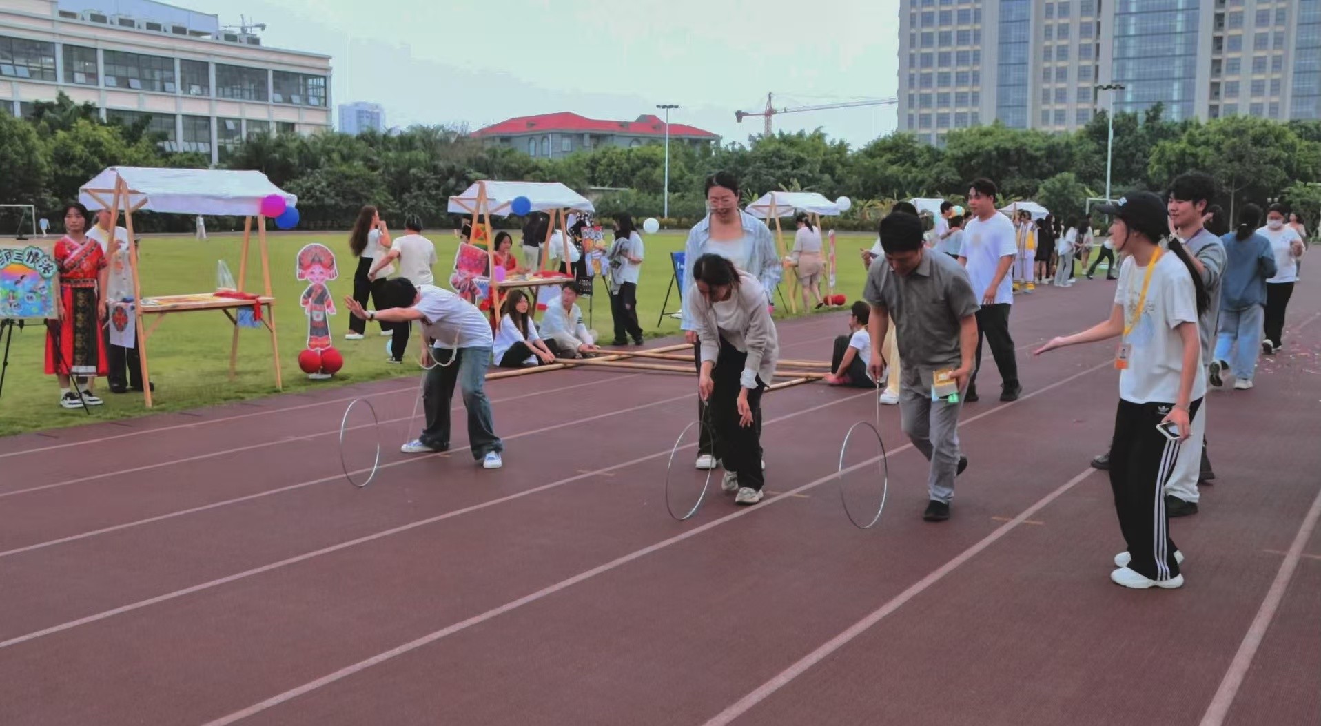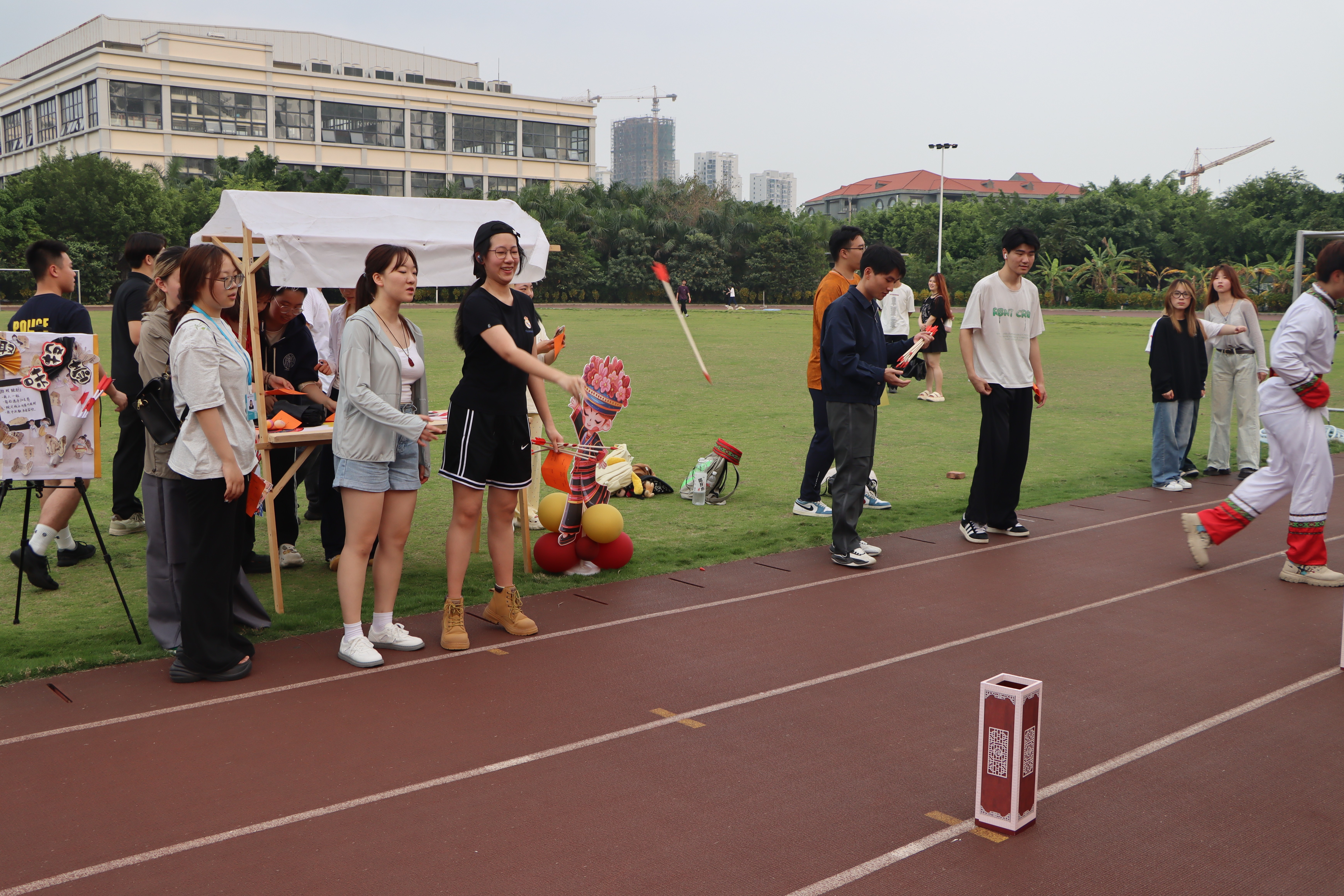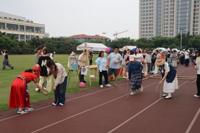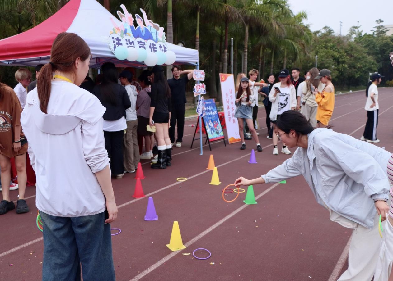 当日,游园活动现场为师生设置了丰富的民俗体验项目。分别有趣味投壶、彩蛋碰碰碰、欢乐抛绣球、乐跳竹竿舞、趣味滚铁环以及法治小问答等。让在场师生在欢声笑语中感受着民族文化的魅力,让大家在参与中传承文化、创新文化。