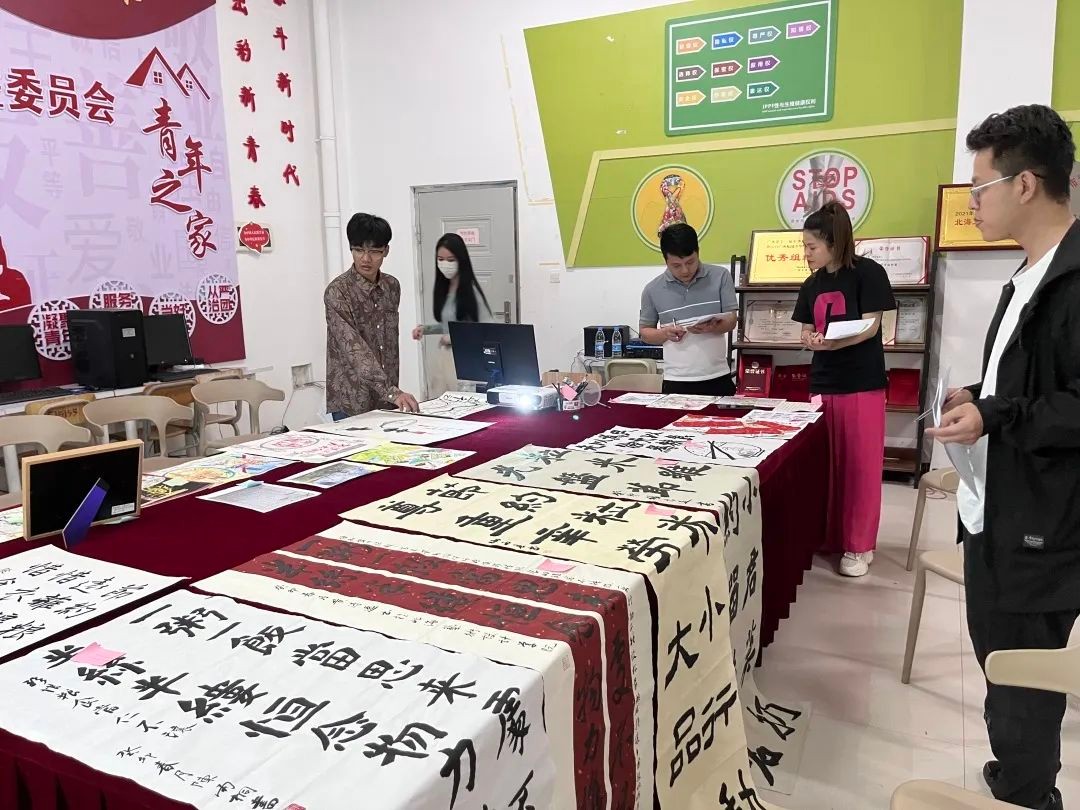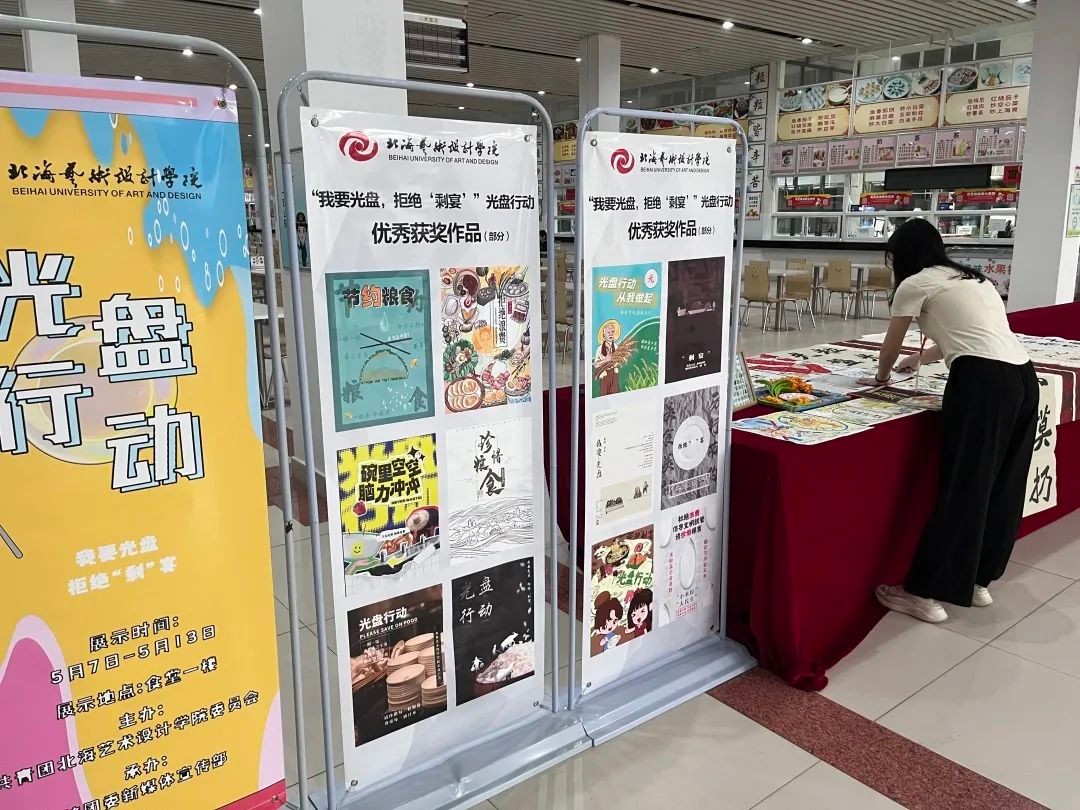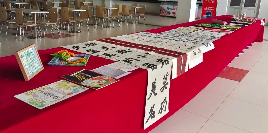获奖作品在食堂一楼展出(部分)