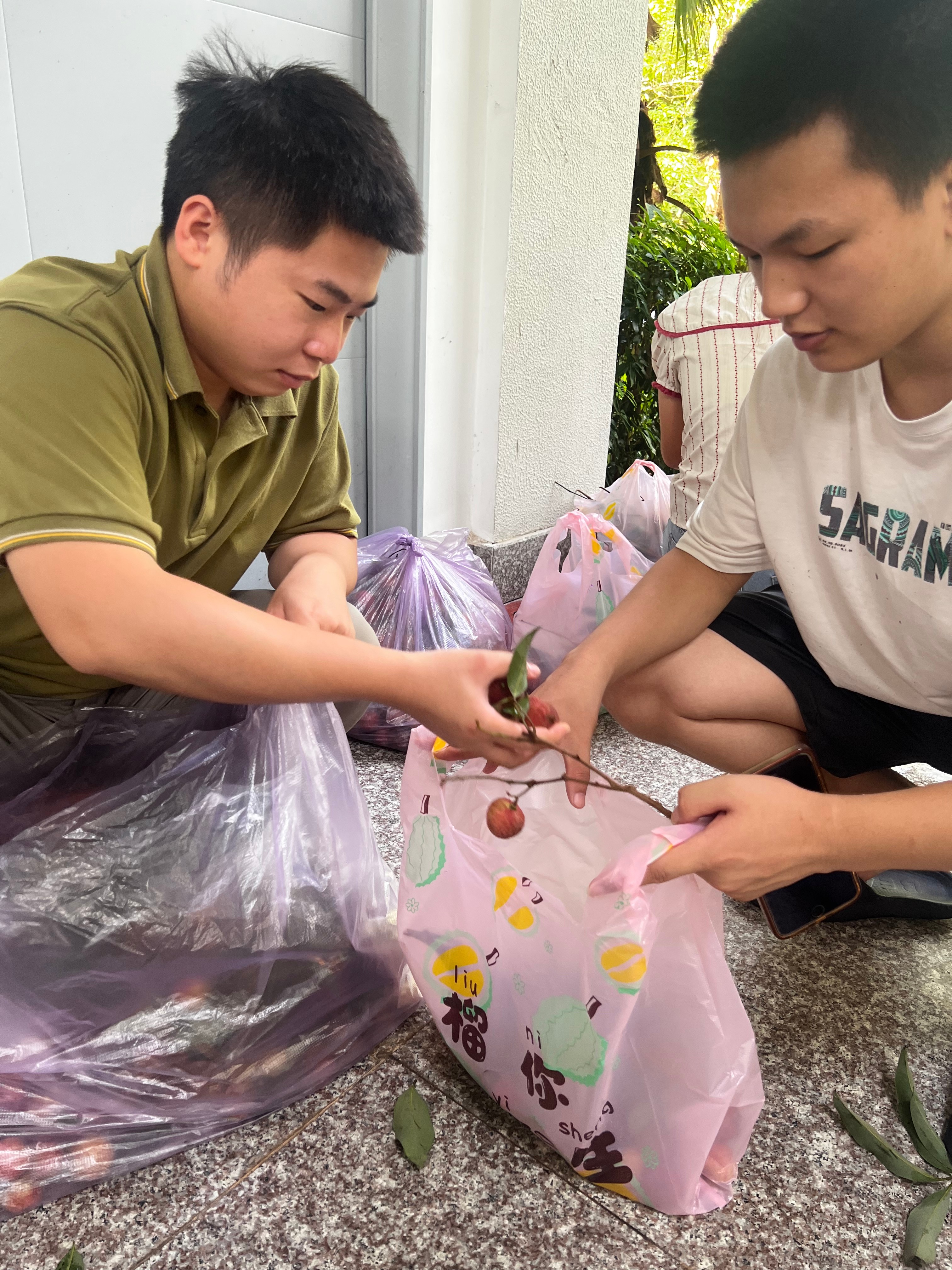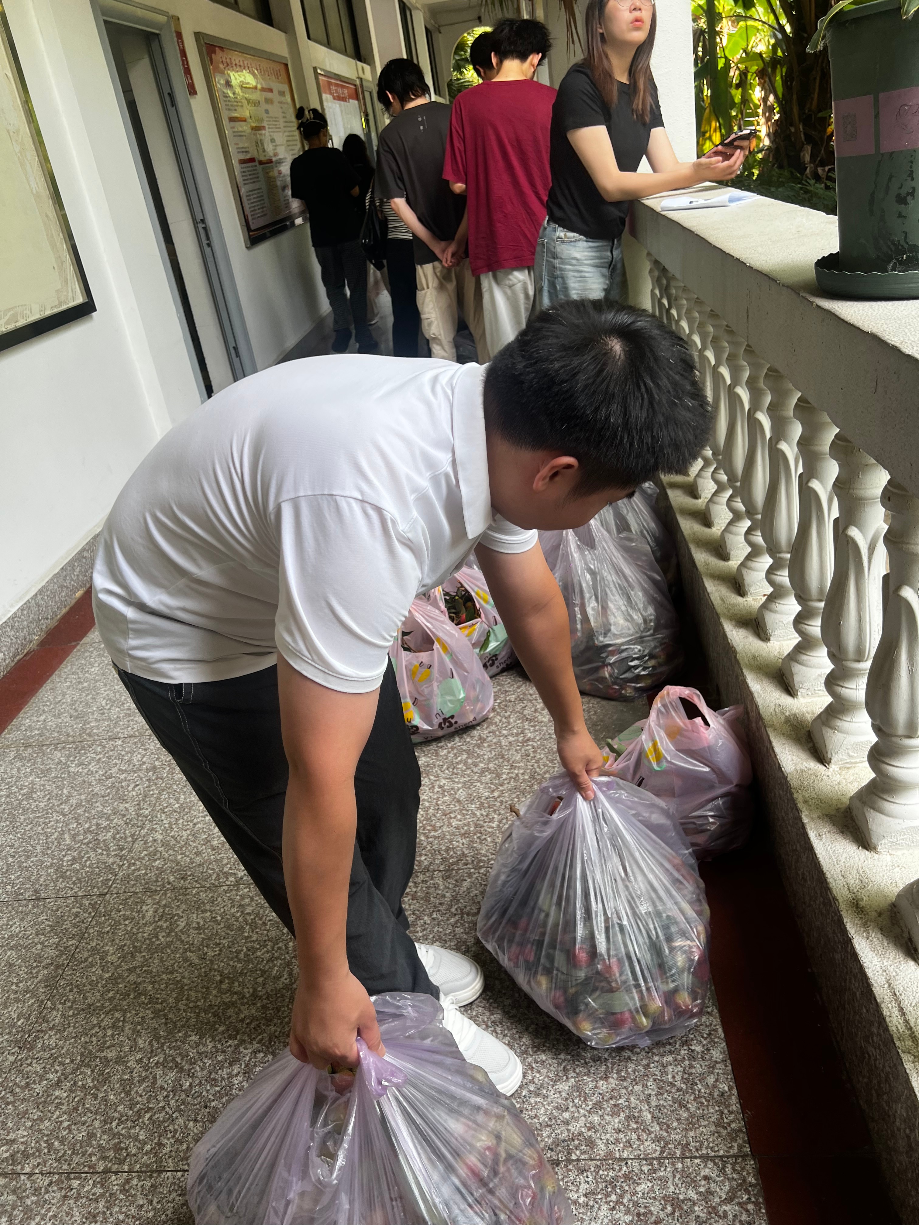 确保同学们能品尝到最新鲜的荔枝美味,学校相关部门提前谋划,多方比选,严格把控荔枝品质。从产地的优选运输的保障,到接收、分装、发放各环节的无缝衔接,无不体现着学校的用心与细致。发放现场,书法学院全体学工教师共同协作,设立高效便捷的领取点方便同学们签领。一袋袋红艳饱满、带着绿叶清香的荔枝被迅速、有序地分发到同学们手中。现场气氛热烈而温馨,同学们脸上洋溢着惊喜的笑容,迫不及待地分享着这份来自学校的“夏日限定”甜蜜。
