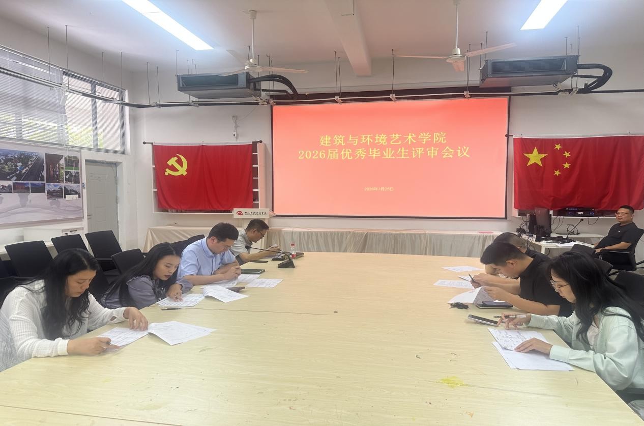 为深入贯彻党的二十届四中全会及全国教育大会精神,进一步加强和改进大学生思想政治工作,引导广大学生树立正确的成才观和择业观,全面落实立德树人根本任务,充分激发大学生的责任感与使命感,同时充分发挥我校优秀毕业生的示范引领作用,展现我校学子的优秀风采,经学院研究决定,2026年3月25日,建筑与环境艺术学院于公德楼207召开2026届优秀大学毕业生评审会议,学院总支书记庞定坤、学院总支副书记曲玥、学院副院长张乐平及学工办主任郭溪,唐曼莉、张卫东、贾金琨、孙晓莹等教师参加会议。
